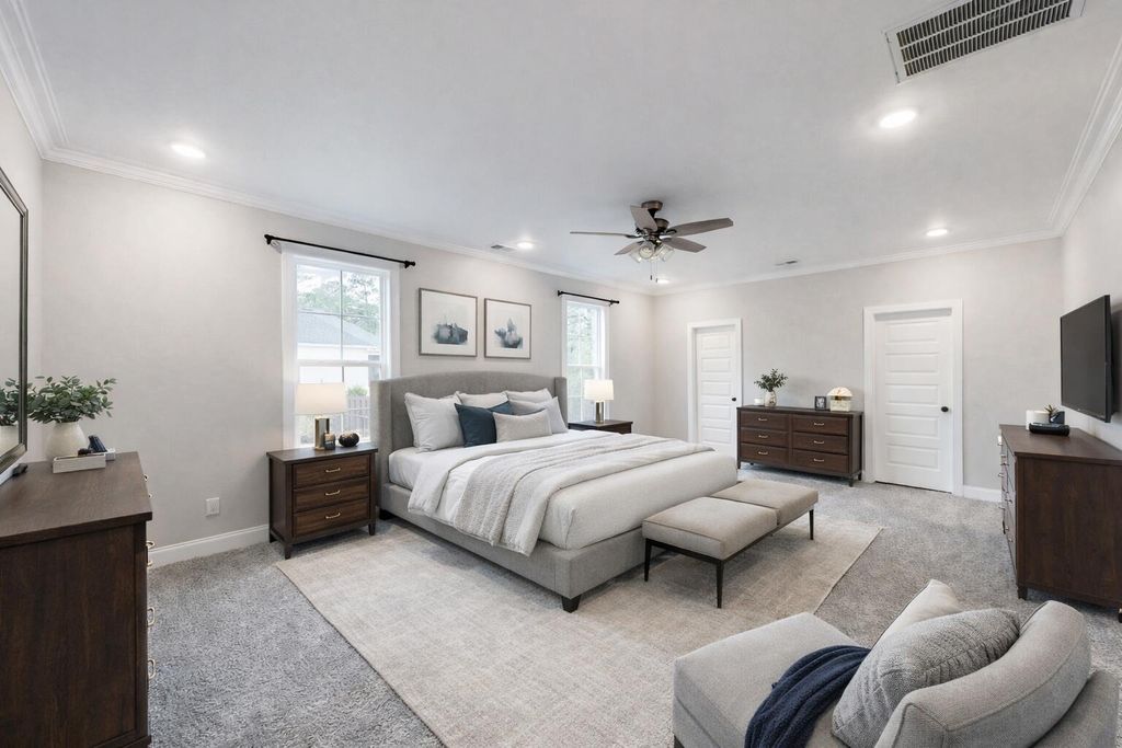 Stunning One-Level Living with Flex Space that could be a 5th bedroom with a private full bathroom! Welcome to your dream home, this exquisite 4-bedroom, 3.5-bathroom residence is perfectly situated on over half an acre! Step onto the expansive rocking chair front porch and through the gorgeous stained front entry doors into a beautiful foyer adorned with charming board and batten! The open floor plan boasts an inviting living room featuring a soaring vaulted ceiling, new upgraded ceiling fan, a cozy gas fireplace with shiplap detailing, and sliding glass doors that seamlessly connect to a screened porch - perfect for enjoying the beauty of indoor/outdoor living! The heart of the home is the gourmet kitchen, equipped with a massive island with bar seating, stunning granite countertops, a stylish backsplash, a KitchenAid gas range, a sleek vent hood, a pantry, a 3-tier Whirlpool dishwasher, an under-mount Whirlpool microwave and the refrigerator stays! Enjoy casual meals in the bright breakfast room or host elegant dinners in the dining room, which features a beautiful coffered ceiling and board and batten detailing! Retreat to the main-level owner's suite, complete with two spacious walk-in closets and a luxurious bathroom that includes a double sink granite vanity, framed mirrors, a tiled shower, a relaxing soaking tub, and a convenient linen cabinet! Two additional generously-sized bedrooms are located on the main level, with a nearby full bathroom featuring a double sink granite vanity! Ascend to the huge upstairs flex room, perfect for a game room or home office, which includes its own private bathroom! Walk-in attic access, a half bath with a granite top vanity, and a well-appointed laundry room with ample cabinet space and an LG top-loading washer and an LG dryer! Walk-in attic access that is partially floor with plenty of storage room! Step outside to your private oasis! The lovely patio overlooks a landscaped, and fenced backyard that blends right into the beautiful nature surroundings, what an ideal for relaxation! Enjoy the convenience of an oversized side entry 2-car garage! The home is protected from the rain by professionally installed gutters fitted with leaf filters! Throughout the home, many improvements and upgrades have been made by the current owners - Interior Upgrades: In December 2024, a brand new dishwasher, kitchen refrigerator, washing machine and dryer were installed! The interior living spaces were professionally painted in Spring 2025! New light fixtures and ceiling fans were installed in most rooms, complete new property fence was professionally installed in September 2025, an upgraded on-demand high capacity tankless hot water system was added, and new comfort-height commodes were installed in two bathrooms! Automatic lights were installed in the laundry room and the adjacent hallway - a huge help when you have your hands full! Exterior Upgrades: The landscaping in the entire yard was renovated and upgraded! This included expanding the front and rear sprinkler systems, installing weed-blocking fabric in planters and replanting most flower beds. As you can see, the hard work has all been done for you to make this a most attractive, comfortable and well-functioning home, where maintenance is a breeze! Don't miss this great opportunity to own the delightful haven you've been searching for! Great location with easy access to SRS, Fort Gordon and much more!