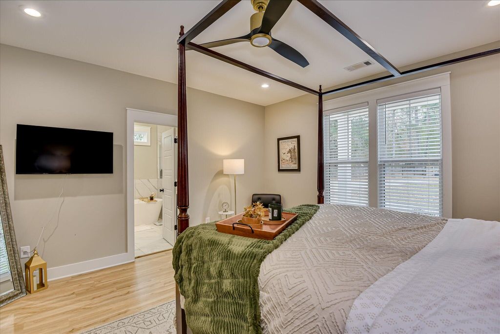 Your house-hunt is over! Dove Cottage, where luxury living meets laid-back country charm! This modern farmhouse masterpiece sits on a gracious 1-acre lot, offering a little breathing room and a lot of convenience. From your columned front porch with tongue and groove ceilings you'll enter a sun-drenched great room. Imagine chilly nights by the gas fireplace, flanked by custom built-ins, it's the ultimate cozy spot! The modern kitchen is a dream come true for anyone who loves to entertain (or just loves a great snack!). With an oversized island, solid surface counters, custom cabinetry featuring a built-in refrigerator, and a massive walk-in pantry, you'll be whipping up gourmet meals in style. Plus, the kitchen sink features a window view of your private backyard retreat"”making dish duty a pleasure (almost)! The floorplan offers maximum privacy with the two guest bedrooms on one side, that share a Jack-and-Jill bath with dual vanities"”ideal for family or guests. The owners' suite, located on the opposite wing, is your personal sanctuary. Pamper yourself in the spa-like bath featuring dual vanities, a free-standing tub, and a stunning tiled walk-in shower. The best part? The bath connects directly to the envy-inducing walk-in closet and the laundry room (with a utility sink!), making laundry day a breeze. Say goodbye to high utility bills thanks to the energy-efficient gas water heater and spray foam insulation. And for your furry friends? The entire property is ready to roll with a perimeter fence (with no-climb wire and gate), giving your pets a safe and massive area to roam and play! Sometimes you need a little more space and the detached ''cottage'' fits the bill! Currently set up as an extra bedroom, the cottage has power, heat and air, and plenty of room left to add a bath. It would also make an excellent office, exercise room, or hobby space! You truly get the best of both worlds here! You'll feel miles away from the hustle, yet you are just a stone's throw from daily essentials like Target and Publix, and just 10 minutes from downtown. This is the convenient location you've been searching for! Ready to start your new chapter in this exquisite home?