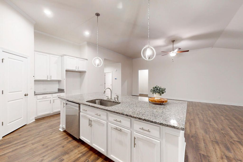 *Move-in Ready - Huge Island - All One-Level with Upstairs Flex Room!* Wonderful like-new 3-bedroom, 3 full bath home with a versatile upstairs flex room, and a welcoming rocking-chair front porch that leads guests into a light and cheery foyer! This home offers a bright, open floor plan with high ceilings and crown molding, where the living room features a ceiling fan and fireplace for comfort! The kitchen is a chef's delight with a large island/breakfast bar, granite countertops, a tiled backsplash, gas range, built-in microwave, dishwasher, and a pantry, all flowing into the dining area! The first-floor owner's suite includes a tray ceiling, ceiling fan, and a private bath with a double-sink granite vanity, a large tiled shower, a water closet, a linen closet, and a spacious walk-in closet! Two spacious spare bedrooms with a nearby full bathroom with a granite vanity and ceramic tile! Upstairs, a large flex room includes a closet, walk-in attic space, and an additional full bathroom with a granite vanity and ceramic tile - perfect for guests, a media room, or a home office! The laundry room features ceramic tile for easy maintenance! Outdoors, you'll enjoy a covered porch with an extended patio overlooking the backyard, ideal for entertaining, while a two-car garage and charming sidewalk enhance the home's curb appeal! Conveniently located with easy access to downtown Aiken, Augusta, and more!