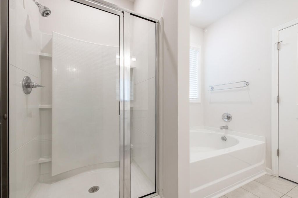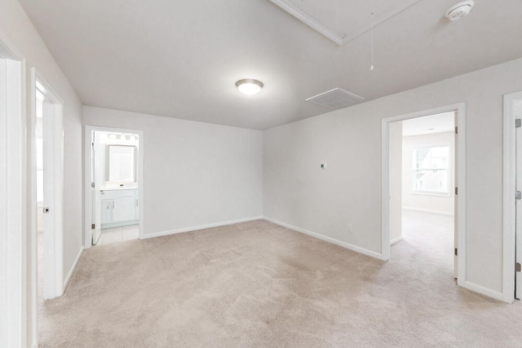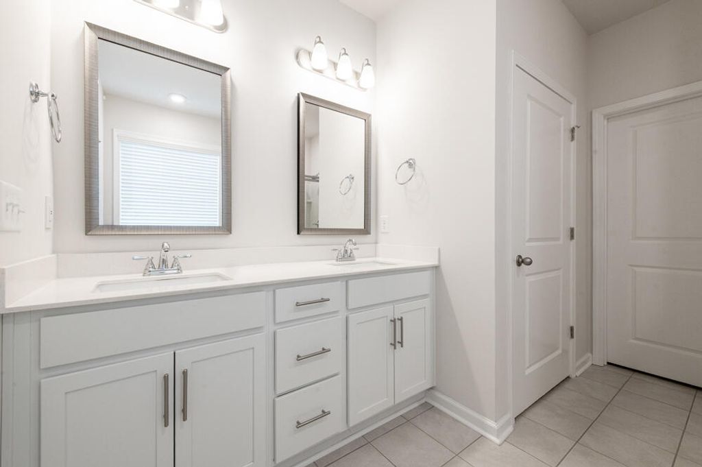 This pristine, move-in-ready 4-bedroom, 3.5-bathroom home has the owner's suite on the main level and the home offers luxurious comfort in a welcoming community with a neighborhood pool, cabana, playground and sidewalks! Inside you'll find an inviting foyer, low maintenance LVP flooring, a sunlit living room with an upgraded light fixture and additional windows for ample natural light! The chef-ready kitchen boasts granite countertops, a stylish backsplash, bar seating with nice pendant lighting, a pantry, a 5-burner gas range with convection, dishwasher, built-in microwave, and a refrigerator, all flowing into a dining room crowned by a tasteful light fixture! The owner's suite is complete with a ceiling fan, double-sink quartz vanity, framed mirrors, a soaking tub, a separate shower, and a walk-in closet! Upgraded oak hardwood stairs that lead to the large loft with wrought-iron railing! Three guest bedrooms - each with walk-in closets; one of these bedrooms has a private full bathroom with a quartz vanity, while the other two share a nearby full bath with a quartz vanity! The laundry room includes a washer and dryer that can stay, and a half bath serves guests! Outside, a patio overlooks a landscaped, privacy-fenced backyard planted with three crepe myrtles and three maple trees, complemented by a full sprinkler system and a tankless water heater! A two-car garage completes this thoughtfully designed home, combining modern amenities with tasteful finishes for comfortable, effortless living!