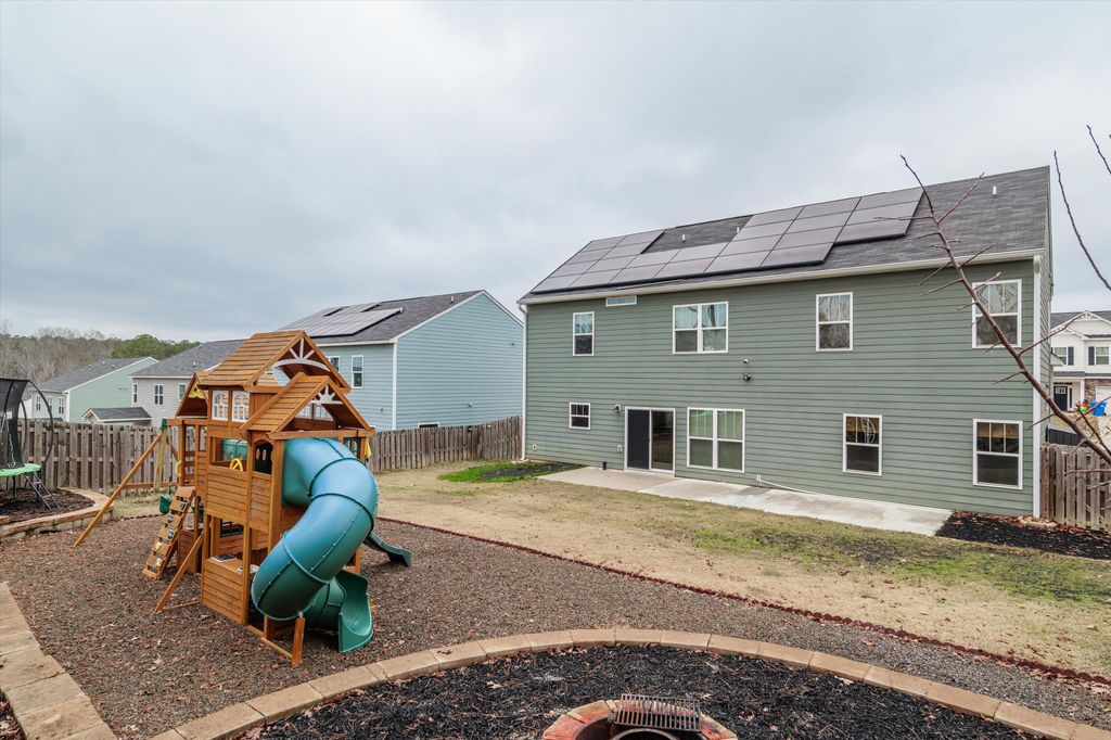Discover this beautifully updated two story home in Cornerstone Creek with no HOA and an unbeatable location just 10 minutes from Gate 6 at Ft Gordon. Designed for both comfort and efficiency, this home features luxury vinyl flooring throughout with no carpet anywhere, fresh interior paint, granite countertops, and an upgraded 8 inch stainless steel sink in the kitchen. The main level offers exceptional versatility with a guest bedroom, a full bathroom, and a dedicated study ideal for remote work. Upstairs you will find a spacious owner's suite with a garden tub, a separate shower, and an oversized walk in closet. An expansive loft provides flexible space for a media room, a play area, or a second living space, and three additional bedrooms complete the upper level. Step outside to enjoy peaceful evenings on the extended back patio overlooking serene green space. The fenced backyard has been leveled and graded to create the perfect setting for play, gardening, or entertaining. Newly installed Tesla solar panels offer impressive energy savings and even more value. Located in the heart of Harlem, this home places you minutes from a charming downtown filled with festivals, vendor fairs, locally owned restaurants, and movies on the green at the new public library. Enjoy small town charm with the convenience of a quick commute to Augusta. This area also qualifies for USDA zero percent down financing for eligible buyers. Some of the photos have been virtually staged.