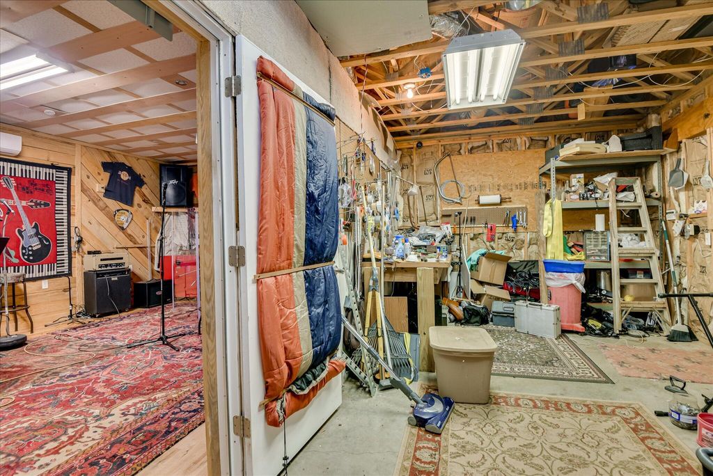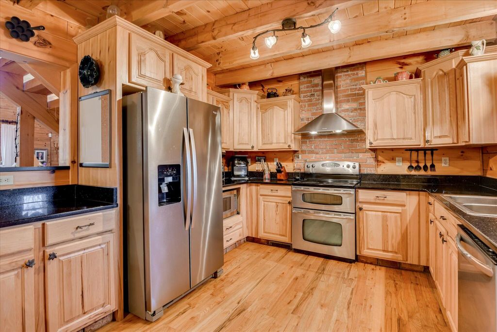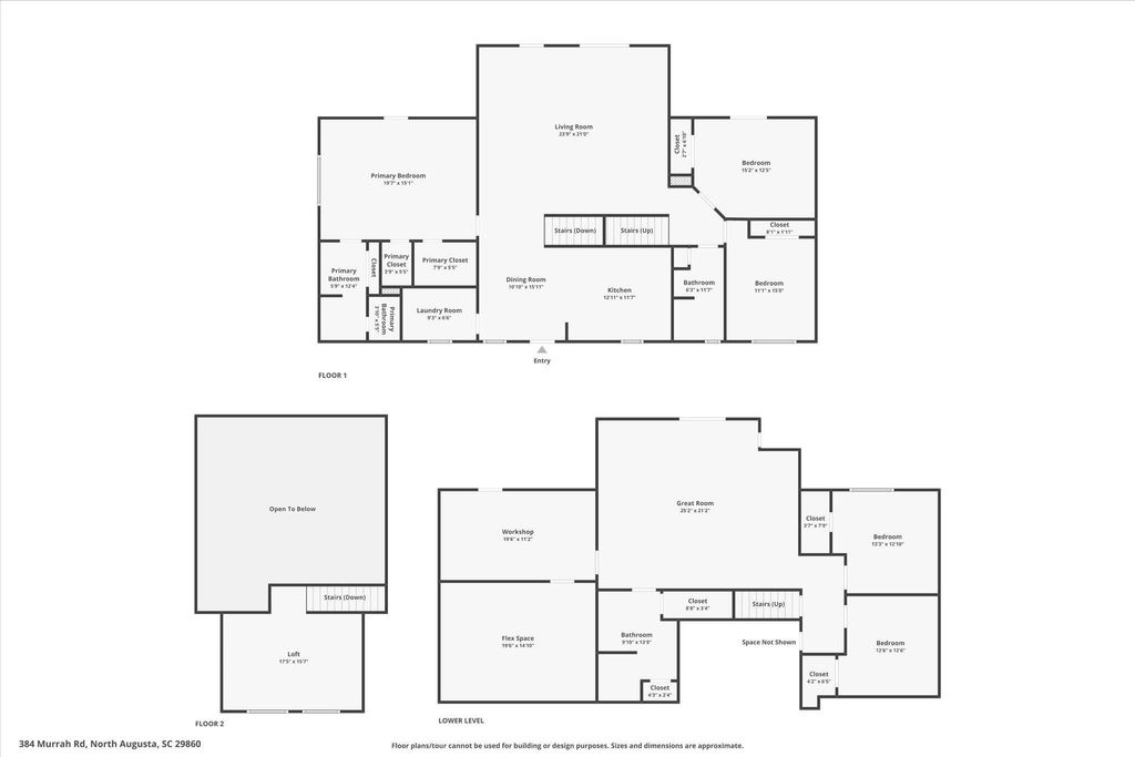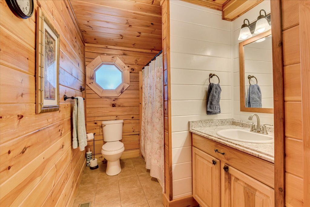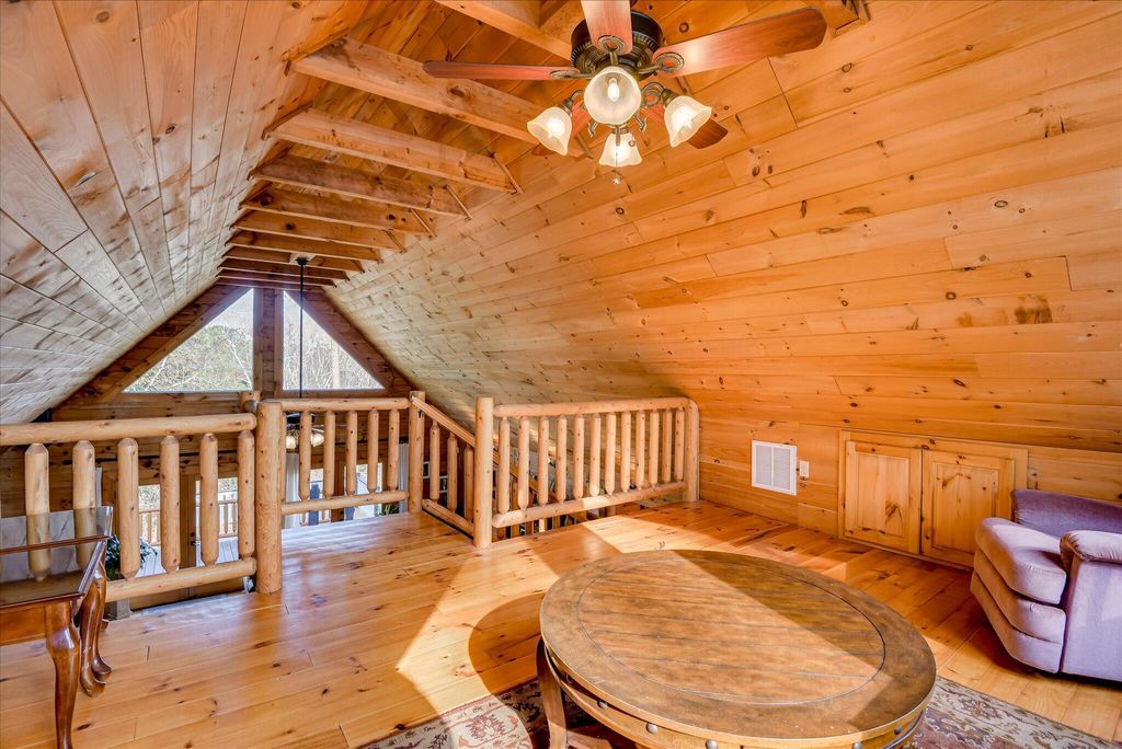 Experience the timeless beauty and craftsmanship of this exceptional custom log home, offering over 3700 square feet of finished living space with approx. 450 sq ft of partially finished storage space/ flex space. Nestled on two private, wooded acres with beautiful stone walkways, this residence welcomes you with a grand wraparound porch, and two-tiered decking perfect for outdoor entertaining, with a spacious detached workshop. Ideally located in North Augusta, just minutes from both Aiken and Augusta, this property combines rustic charm with modern convenience. Constructed from solid white pine logs, the home features impressive property-sourced wood beams and locally reclaimed brick tiles in the kitchen, creating a unique blend of natural textures. The gourmet country kitchen showcases custom hickory cabinetry, sleek black granite countertops, and enduring quality. Throughout the home, you'll find beautiful white pine floors and tongue-and-groove ceilings. The expansive, vaulted living room is flooded with natural light from picture windows and centers around a stately Leyden cast iron wood-burning stove set on a dramatic stone hearth. The thoughtfully designed split-bedroom floor plan features a spacious primary suite with a comfortable en suite bathroom, complete with tiled flooring and shower. On the opposite wing, two inviting guest bedrooms and a well-appointed guest bath provide comfort and privacy for family or visitors. An upper-level loft offers more picture windows for a versatile retreat, ideal for a home office, reading nook, or play area. A striking cedar tree cut on site, accentuates the staircase leading to the finished walk-out basement, where you'll discover two additional guest bedrooms, an expansive den with a convenient kitchenette, and a combined bathroom and laundry area. Two generous storage rooms provide ample space for hobbies, currently used as a music studio and workshop. Additional highlights include a brand new roof (2025), a dedicated utility closet for easy access to home systems, a comprehensive whole-home water filtration system, and an oversized 84-gallon water heater for enhanced comfort and efficiency. Outside enjoy a large detached workshop/ garage perfect for the car hobbyist or craftsman or additional storage for recreational vehicles.