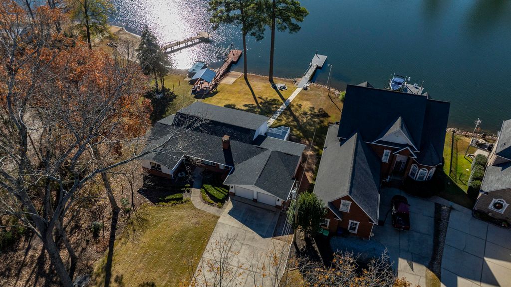 Welcome to lake life in Chapin, right on beautiful Lake Murray. From the moment you step inside, the view steals the show. Scenic lake views and hardwood floors run throughout the home, with large rear windows that let the water follow you from room to room. Just off the entry is a cozy formal living room featuring a propane fireplace with four blowers, perfect for cool lake mornings. Nearby, the eat-in kitchen offers a bar, double ovens, and plenty of cabinet space, making it both functional and welcoming. The formal dining room sits just beyond and opens directly to the back deck overlooking the lake. An additional room off the dining area provides flexibility for an office, exercise room, or whatever fits your lifestyle. The main living room is a true centerpiece with soaring, floor-to-ceiling windows that flood the space with natural light and frame the lake views beautifully. Tucked to the left, the primary suite feels like a private retreat, complete with those same floor-to-ceiling windows so you can wake up to the water every day. The primary bathroom is packed with luxury, featuring heated floors, a heated tub with lighting, a heated towel bar, and granite countertops. The custom primary closet includes a built-in closet system, full mirror, and in-wall jewelry storage, with the laundry room conveniently located inside and equipped with a folding table. Down the hallway, two additional bedrooms have generous natural light and share a beautiful bathroom with tile, granite, and a full-size shower. Outside, the property spans .64 acres with a large front yard and an organic garden area. The two-car garage provides ample storage and includes a built-in safe. On the lake side, you'll find two composite decks. One connects directly to the primary bedroom, while the larger deck is ideal for entertaining or unwinding. Down by the water's edge, a fireplace creates the perfect lakeside hangout. A private dock and boat ramp complete the package, making it easy to enjoy everything Lake Murray has to give