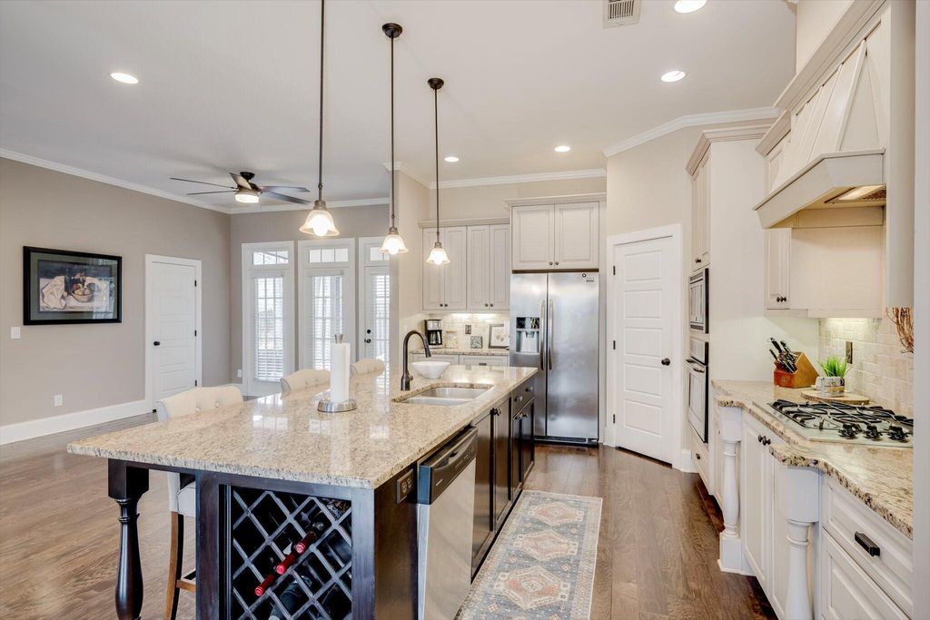 Welcome to this exceptional home offering a distinctive inverted floor plan that maximizes views and natural light throughout. Situated just ten minutes from downtown and the medical district, this residence perfectly balances convenience with tranquility in a desirable neighborhood setting. The upper level serves as the heart of the home, featuring an expansive living area and a stunning kitchen equipped with a gas cooktop, generous island with seating for four, wall oven, and walk-in pantry. The primary suite occupies this premier level, boasting a vaulted trey ceiling, dual walk-in closets, and a spa-inspired bathroom complete with a soaking tub and glass-enclosed walk-in shower. The lower level accommodates three additional bedrooms and two full bathrooms, providing excellent separation for guests or family members. A dedicated storage room and convenient side patio enhance the functionality of this level, while the two-car garage offers secure parking and additional storage potential. Outdoor living shines in the fully fenced backyard, where a covered patio creates an ideal space for relaxation and entertaining. The peaceful environment surrounding this property offers a serene retreat while keeping everyday conveniences within easy reach. This four-bedroom, three-and-one-half-bathroom home presents a rare opportunity for discerning buyers seeking thoughtful design in a prime location. Schedule your private showing today.