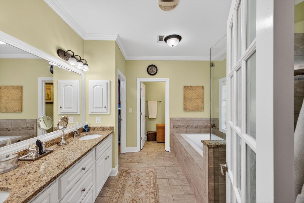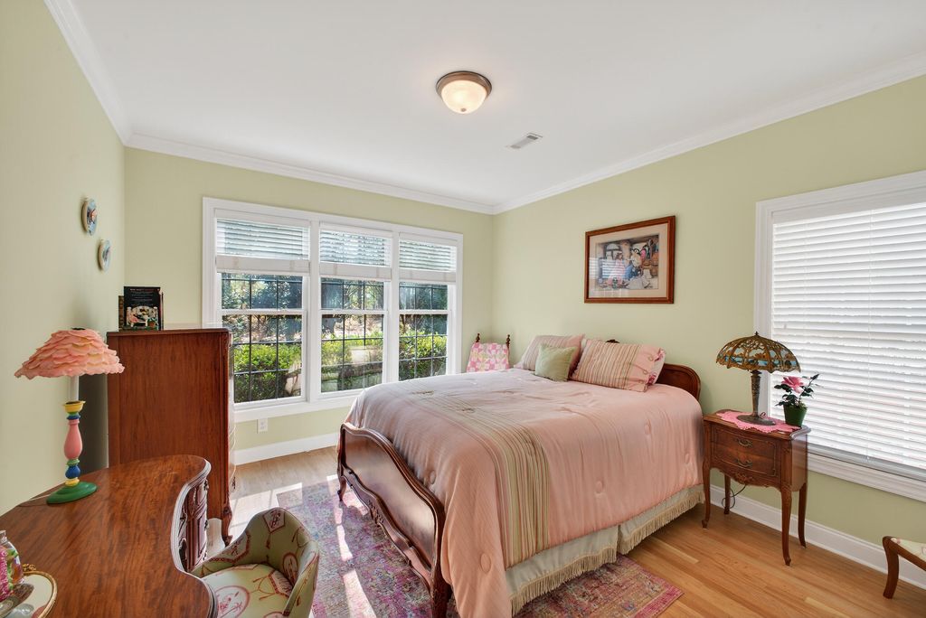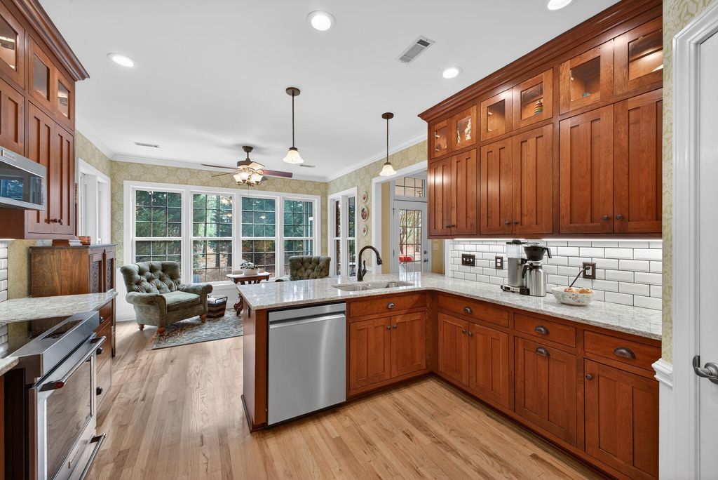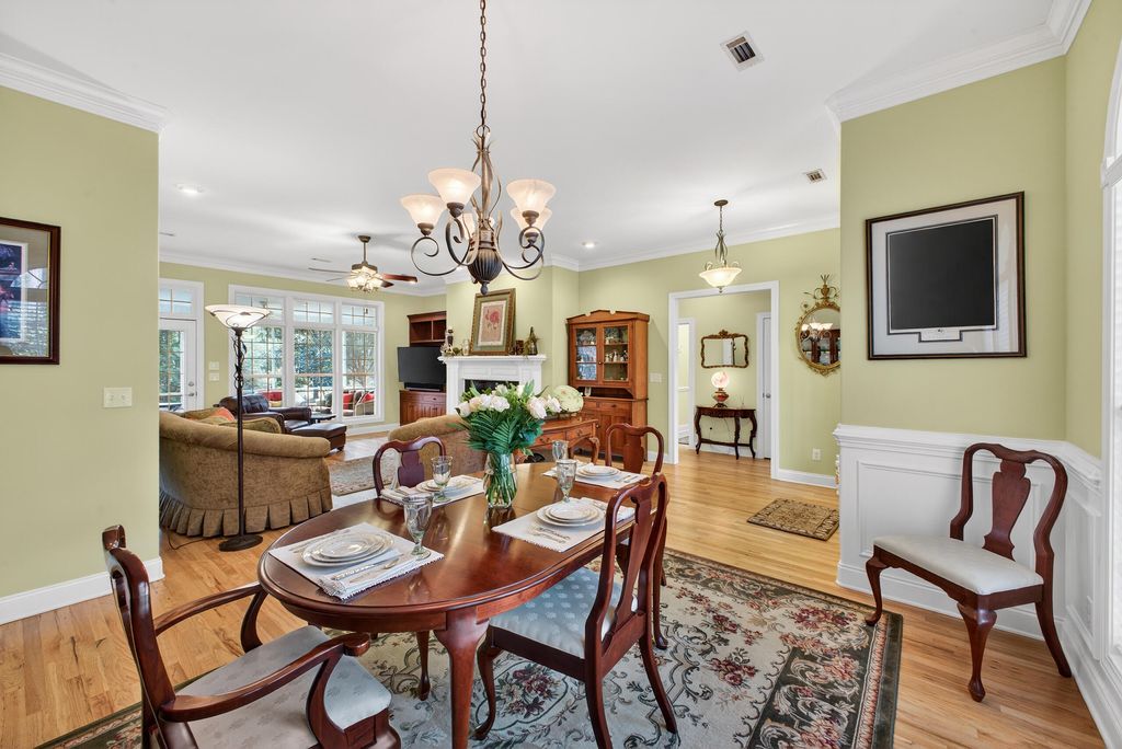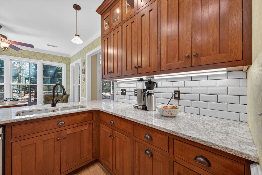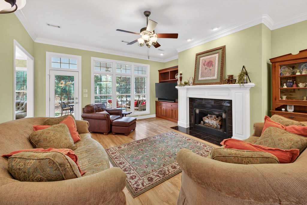 Immaculate, custom, updated, one-story ranch with a bonus room. This Donnie Shaffer-built home is full of his characteristic features, including rounded corners, recessed lighting, smooth ceilings, transom and hall-moon windows, hardwood floors, crown molding, wainscoting, and more. The great room features a large fireplace flanked by beautiful built-in cabinetry and a full wall of windows overlooking the backyard. The formal dining area is nicely lit, with tall half-moon windows and picture-frame paneling. A beautifully updated kitchen features exquisite mission-style cabinetry, quartz countertops, a white brick-style backsplash, display lighting, stainless appliances, a snack bar, and a pantry. There's a breakfast area/sitting area with tall windows on three sides to enjoy the park-like yard. The comfortable owner's suite also has a full wall of transom windows and a trey ceiling. Walk into the owner's bath to a well-designed, updated room including a walk-in glass shower, a separate tub, ample counter space, double sinks, custom cabinetry, a water closet, and a California-style closet. There are two additional bedrooms on the opposite side of the home, with a full bath. Completing the first level is a laundry with mission-style cabinets, shelving, and its own closet. On the second level is the spacious bonus room with a full bath and closet. (Currently used as an exercise room, could be 4th bedroom/guest room. Of special note is the park-like backyard, starting with a roomy screened porch, the raised pergola patio, and the spacious stone patio, featuring a fire pit. There's a 2-car garage with an array of built-in cabinets and an epoxy floor. A ½+ acre landscaped lot is a nice combination of woods for privacy, lawn, and flowering bushes. You'll enjoy Cedar Creek Development, full of amenities: golf, pool, tennis, pickleball, community center, walking trails, nature trails, mini-parks, and ponds. County taxes only.