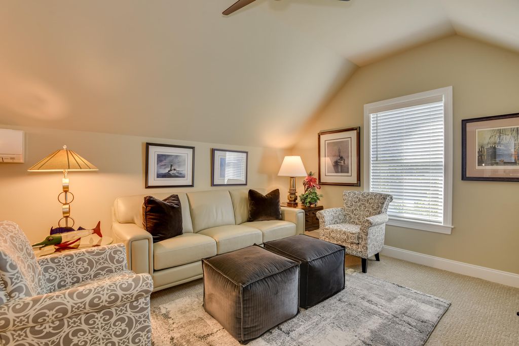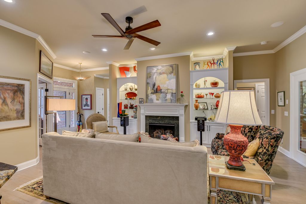 Exquisite renovations in 2023. New roof, new plumbing, new electrical fixtures - all new and subline. Open floor plan with great room and fireplace open to kitchen with all new appliances! Open to dining area and stunning views of green space and creek. Screened porch converted to living space in 2025 with heating and all added 200 more sqft of living space. Wonderful for entertaining! Large primary bedroom and huge walk-in closest, and primary bath will knock your socks off! Second bedroom with attached and lovely bath are all on main level. Storage spaces have been maximized for perfect down sizing scenarios. Appliance pantry and extra large pantry added in 2025. Upstairs has a third bedroom, currently used as media room with bath and closet with access to attic storage. Lovely half bath can be converted to full with plumbing in place. 2 car garage with grilling porch added in 2025. 2,500 of landscaping added in 2025. Come and Enjoy! Listing Agent is related to the seller.