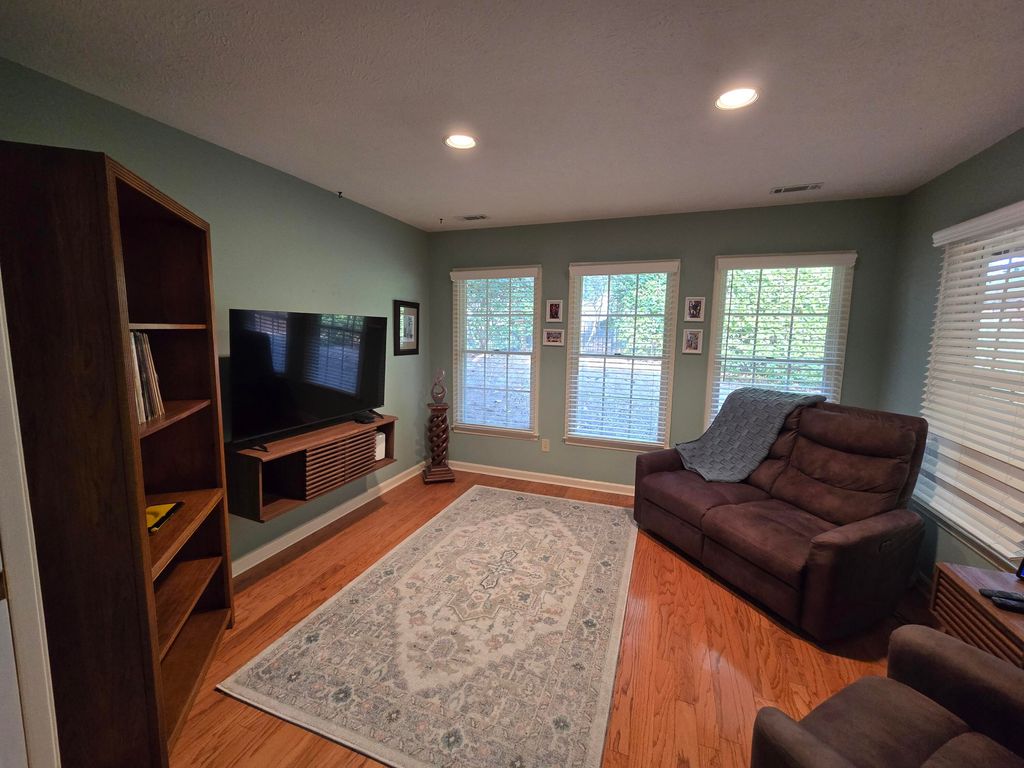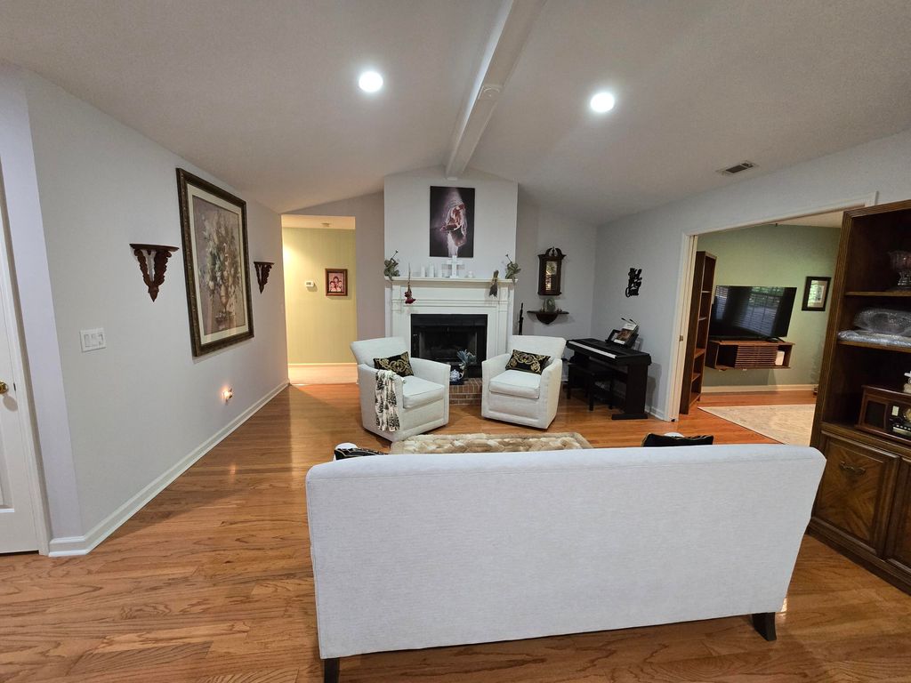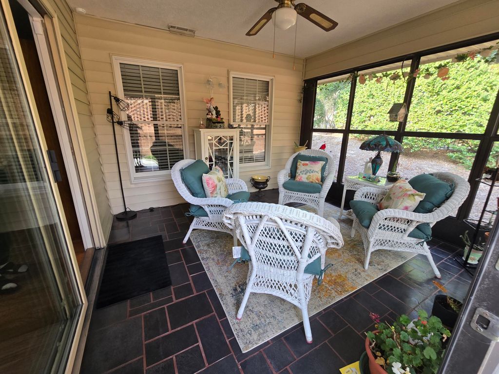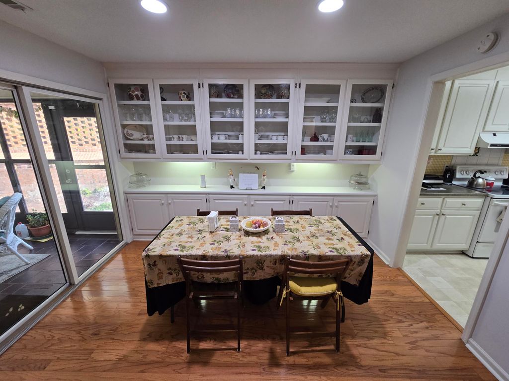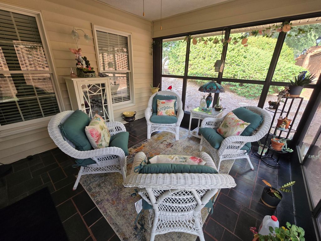 55+ Retirement Gated community. 2 bedroom, 2 bath brick home with spacious bonus room, easily converted to 3rd bedroom. Galley kitchen with two pantries & breakfast nook with bay window overlooking adorable courtyard. Separate dining room with built-in cabinets for additional storage. The living room has vaulted ceiling & gas fireplace. Separate den area with pocket doors & lots of natural light. Large master suite has double closets & bath with solid surface countertop, tile floor & skylight. The newly remodeled 2nd bath has granite countertop & tiled walk-in shower. This home features a beautiful enclosed, heated & cooled 4 season sun room with tile floors. Access beautiful the courtyard with room for entertaining or just enjoying the outdoors. Hardwood floors, can lights throughout, window blinds, brick walkway & front patio are just a few of the extras in this home. In the last 5 years, this home has had new carpet, paint, and a new HVAC. The patio has been completely updated with a new brick wall, lush new grass, bushes and flowering plants, creating a private oasis. Come enjoy all the amenities Kalmia Landing offers including pool, tennis/pickle ball court, community garden, club house with many social activities. Make new friends and enjoy this special community.