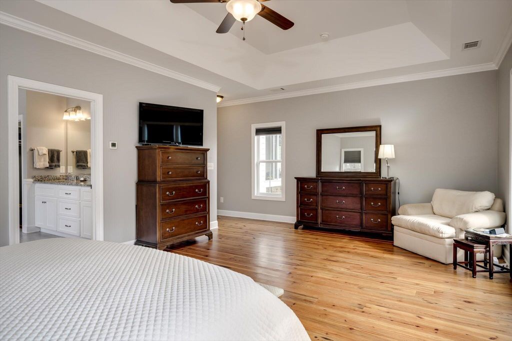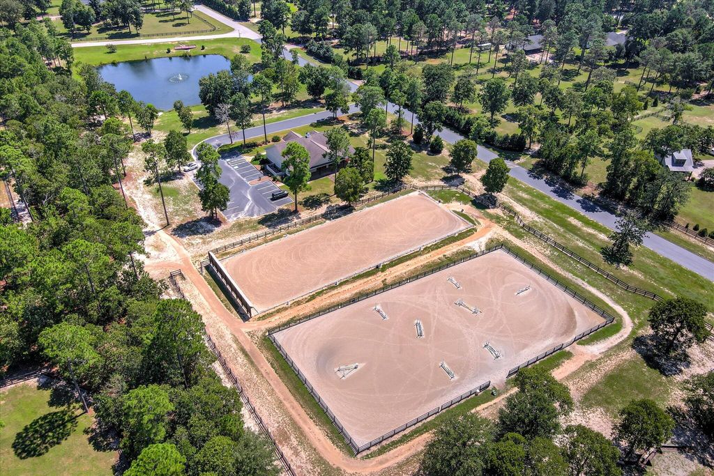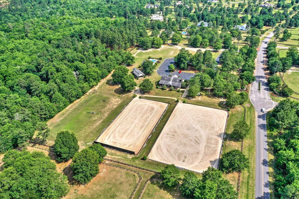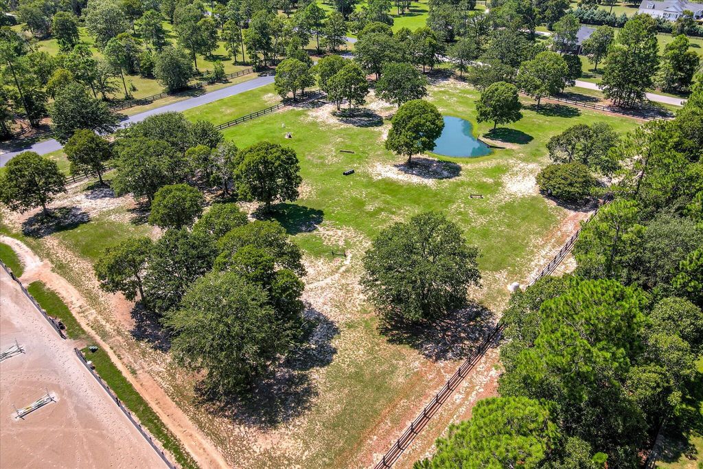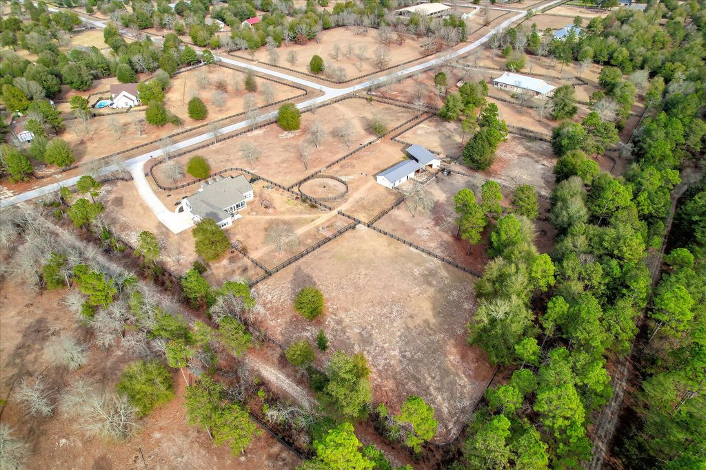 At 9673 Bayboro Circle, you'll have the best of both worlds - the top-notch amenities that Three Runs Plantation has to offer are at your fingertips, and yet you can enjoy the privacy that 6 acres, with wide open pastures on either side can provide. The home keeps you connected with your surroundings with gracious, window-filled rooms that bring the outside in! The single-story home has a semi-open floor plan with the kitchen and great room at the heart of the home, an office with French doors and a closet, and an ample and inviting sun porch with Anderson windows that extends the living space even further. The kitchen offers KitchenAid appliances including a gas cooktop, custom cabinets, granite counters and plenty of space! Beautiful heart pine floors run throughout the living spaces and the owners' suite on one side of the home, while two bedrooms and a shared bath are on the other, allowing for privacy. The 4th bedroom is above the garage and has its own bath and closet, making a wonderful guest suite or 2nd owners' suite. You'll appreciate the huge laundry/transition room that connects directly to the owners' closet and bath, making cleaning up after feeding time a cinch! Two barns with a total of 5 stalls (all with direct turnout) allow for incredible adaptability, whether you have one barn for guests or boarders, or like to give your animals their own space! The first barn has 3 stalls (2 12x12 and one 12x16), a feed room and hay room. The second barn has 2 matted stalls (12x12 and 12x16), a climate-controlled tack room with full bath, kitchenette and lounge, as well as a 12x26 workshop with reinforced concrete suitable for an automotive lift. Use it as a workshop/farm equipment storage, or it could potentially be adapted into additional living space, making the tack room/lounge into a separate apartment! There are a total of 5 pastures, a round pen and an area near the barns that has been used as an arena. Ride directly out the back gate to over 30 miles of trails, just a warm-up hack to the southside schooling area. Three Runs Plantation is a premier equestrian community welcoming all disciplines, with two schooling areas with mirrored dressage and separate jumping arenas, a cross-country schooling area, open green spaces and trails as well as a pool, picnic pavilion, 2 clubhouses and fitness room. Natural gas and fiber optic internet are available.