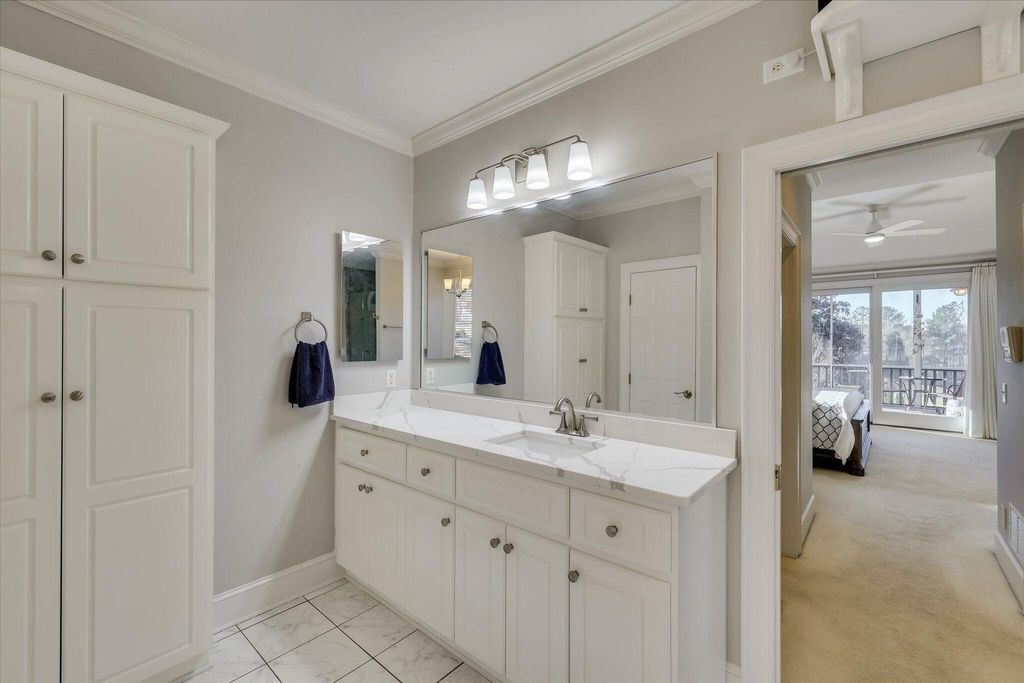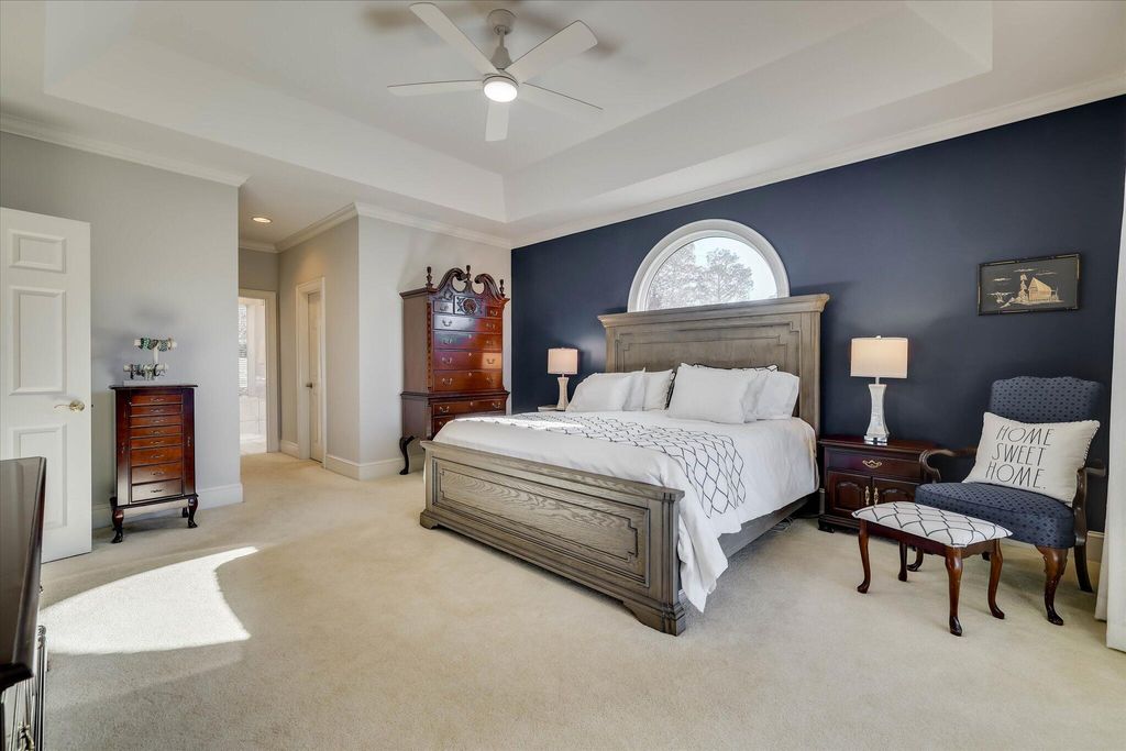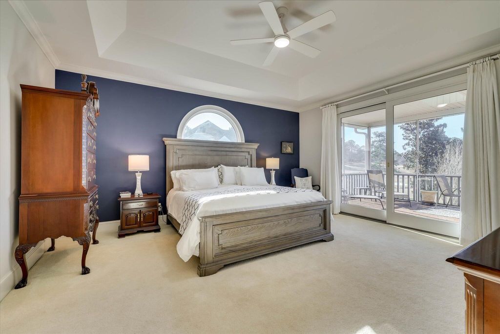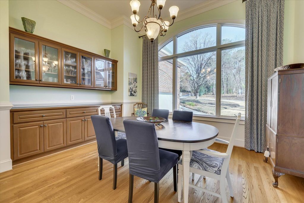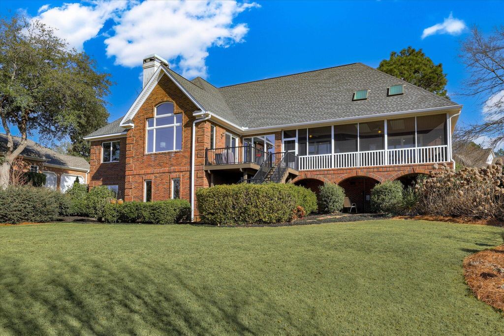This extraordinary 3BR, 3.5BA custom brick is sure to impress with soaring ceilings, expansive open spaces, and breathtaking views of the 12th fairway of the Cupp Course. A welcoming foyer opens to elegant formal dining and living spaces, both filled with natural light. The spacious formal dining room features a wall of built-ins and flows seamlessly into the formal living area, where panoramic views can be enjoyed or extended outdoors through access to the screened porch and adjoining Trex deck that leads to the backyard. The chef's kitchen is truly the heart of the home, showcasing a leather-finish island with prep sink, an induction cooktop with downdraft, and abundant storage"”including a dedicated cabinet with a pop-up shelf for your mixer. A beautiful quartz eat-up bar houses the main sink and provides additional storage below. Beyond the bar are the pantry, slate refrigerator, extra cabinetry, and a convenient desk area. The keeping room just off the kitchen features a gas fireplace flanked by built-ins, a wall of windows to capture the stunning views, and direct access to the deck. The private owner's suite is thoughtfully positioned opposite the guest room and home office. It boasts a high tray ceiling, gorgeous views, dual walk-in closets, and private access to the screened porch"”perfect for enjoying morning coffee. The luxurious owner's bath includes a jetted tub, spacious walk-in shower, dual vanities (hers with a makeup vanity), a cabinet tower for added storage, and a separate water closet. The guest bedroom is generously sized and offers access to a large hall bath with an oversized vanity and a tub/shower combination. The home office, located adjacent to the keeping room makes working from home a pleasure with its fireplace, wall of built-ins, and spectacular views. A powder room is conveniently tucked between the kitchen and laundry room. The laundry room is well-equipped with cabinetry, a laundry sink, a hanging rack and a folding counter. Upstairs, a large private ensuite provides flexibility as a third bedroom or bonus room and offers easy access to the attic. The lower level adds even more versatility, currently serving as an additional living area and workout space. The opposite side features a work sink, extensive storage, and a large maintenance closet housing all mechanical systems. An exterior access door leads to the large backyard with invisible fence, grilling area and oversized hot tub"”located just beneath the screened porch"”convey with the home.
