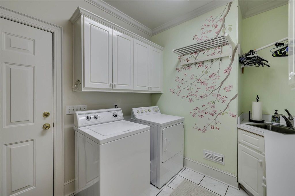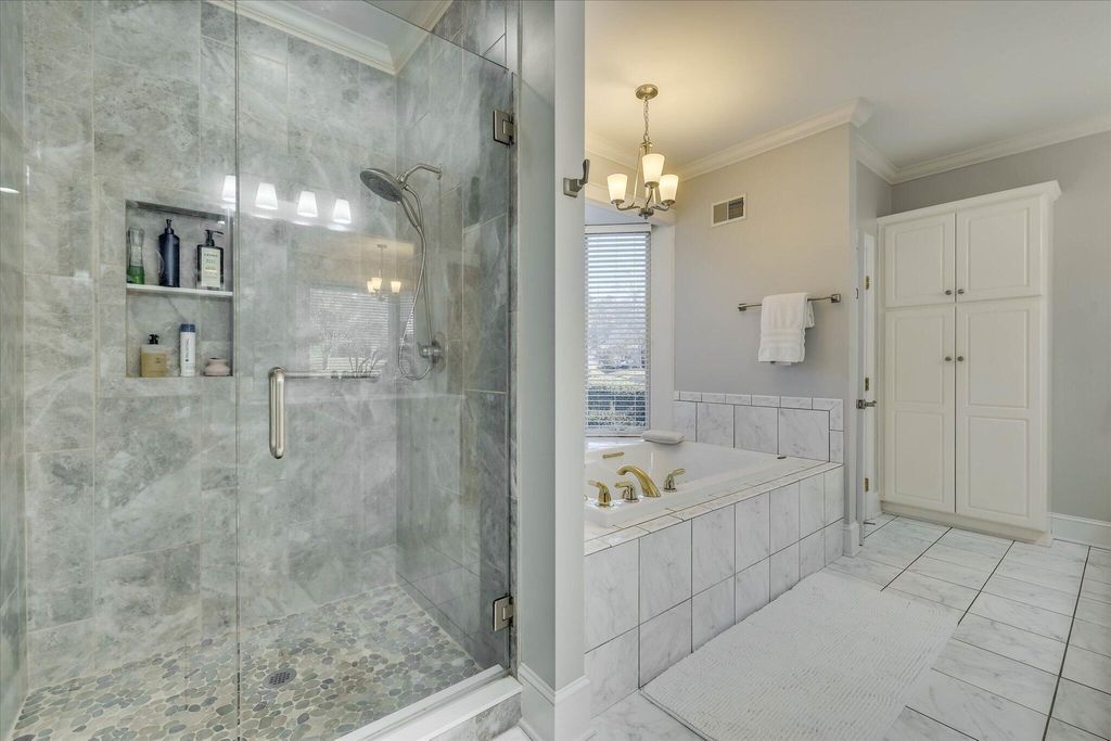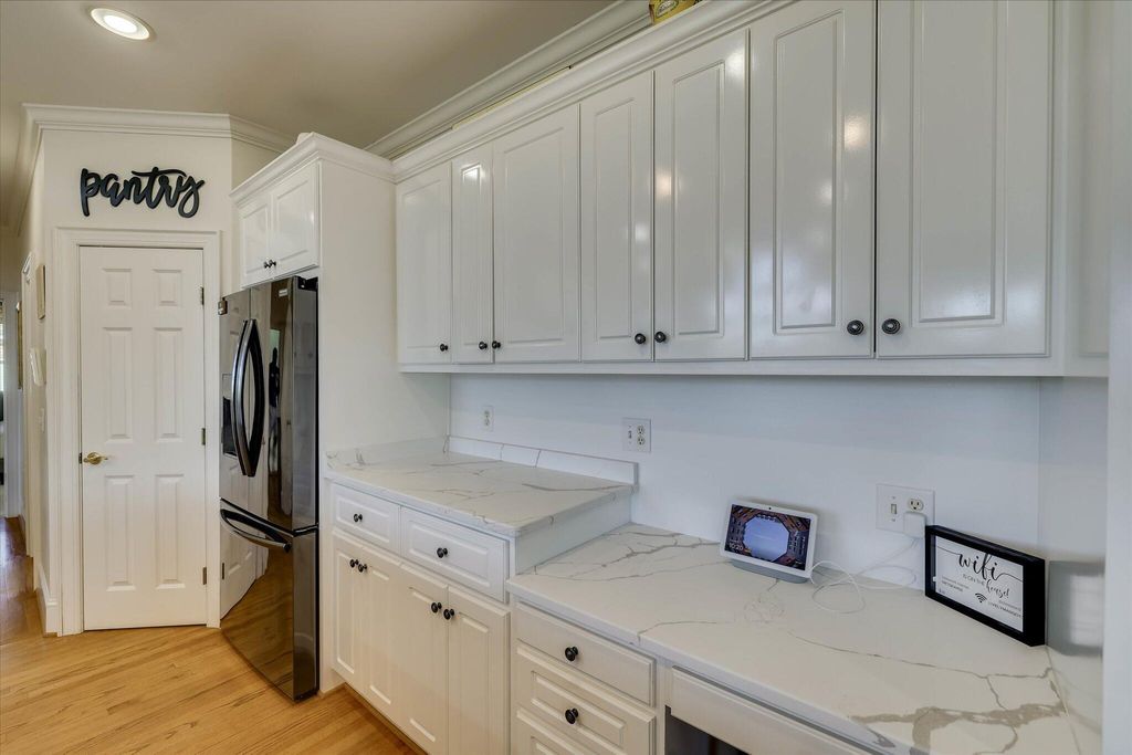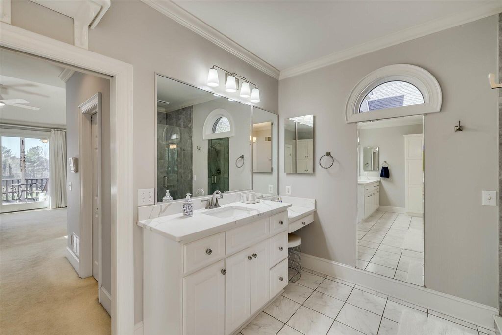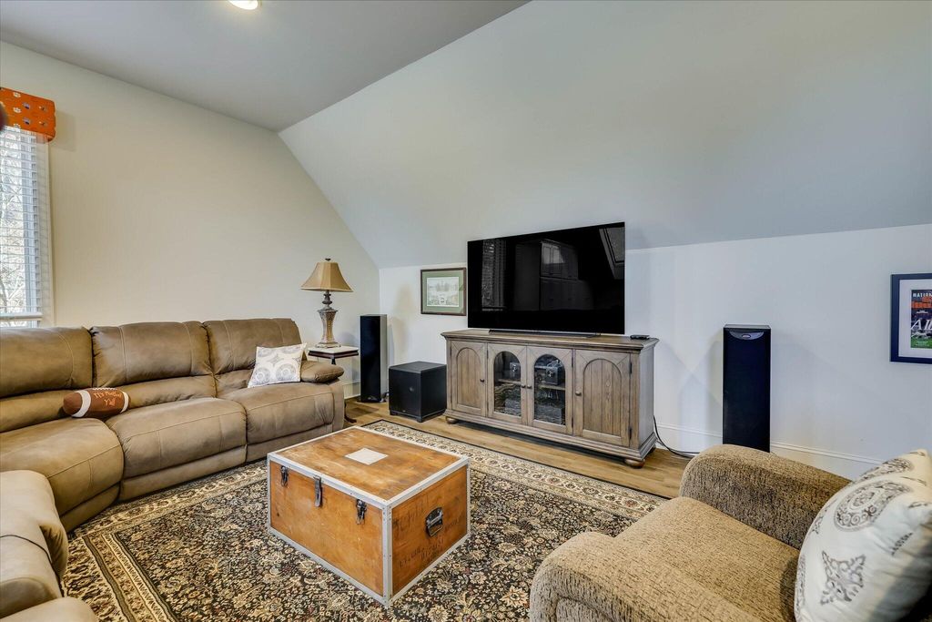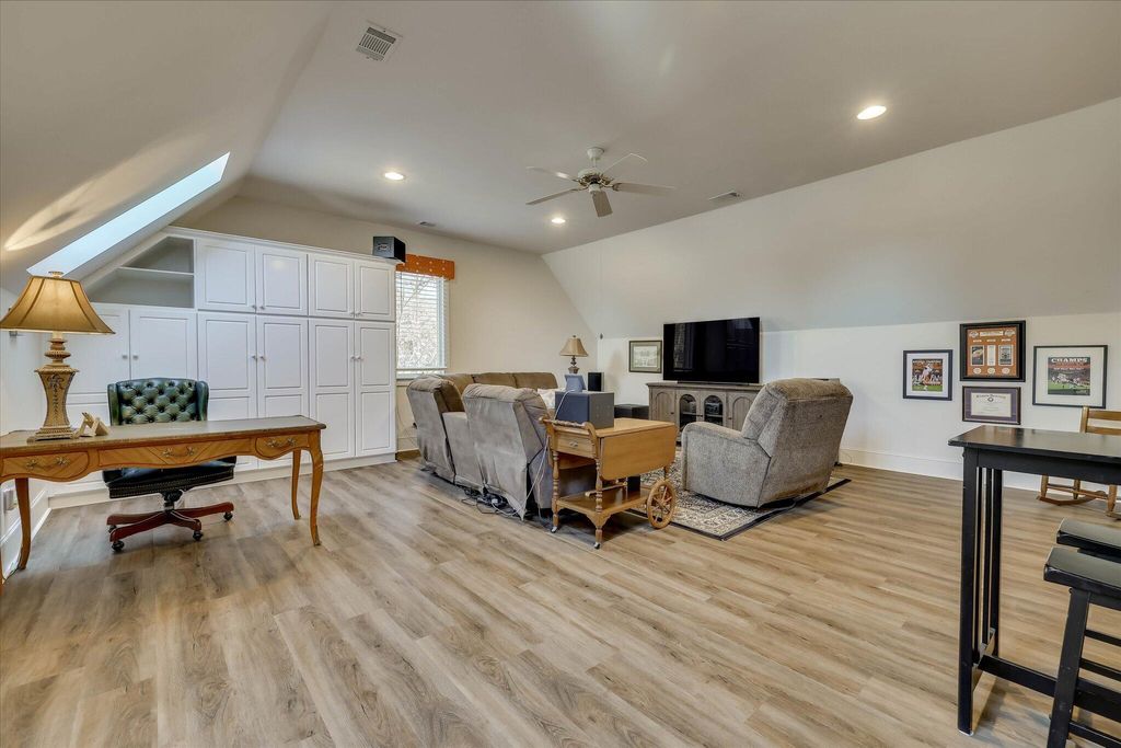 This extraordinary 3BR, 3.5BA custom brick is sure to impress with soaring ceilings, expansive open spaces, and breathtaking views of the 12th fairway of the Cupp Course. A welcoming foyer opens to elegant formal dining and living spaces, both filled with natural light. The spacious formal dining room features a wall of built-ins and flows seamlessly into the formal living area, where panoramic views can be enjoyed or extended outdoors through access to the screened porch and adjoining Trex deck that leads to the backyard. The chef's kitchen is truly the heart of the home, showcasing a leather-finish island with prep sink, an induction cooktop with downdraft, and abundant storage"”including a dedicated cabinet with a pop-up shelf for your mixer. A beautiful quartz eat-up bar houses the main sink and provides additional storage below. Beyond the bar are the pantry, slate refrigerator, extra cabinetry, and a convenient desk area. The keeping room just off the kitchen features a gas fireplace flanked by built-ins, a wall of windows to capture the stunning views, and direct access to the deck. The private owner's suite is thoughtfully positioned opposite the guest room and home office. It boasts a high tray ceiling, gorgeous views, dual walk-in closets, and private access to the screened porch"”perfect for enjoying morning coffee. The luxurious owner's bath includes a jetted tub, spacious walk-in shower, dual vanities (hers with a makeup vanity), a cabinet tower for added storage, and a separate water closet. The guest bedroom is generously sized and offers access to a large hall bath with an oversized vanity and a tub/shower combination. The home office, located adjacent to the keeping room makes working from home a pleasure with its fireplace, wall of built-ins, and spectacular views. A powder room is conveniently tucked between the kitchen and laundry room. The laundry room is well-equipped with cabinetry, a laundry sink, a hanging rack and a folding counter. Upstairs, a large private ensuite provides flexibility as a third bedroom or bonus room and offers easy access to the attic. The lower level adds even more versatility, currently serving as an additional living area and workout space. The opposite side features a work sink, extensive storage, and a large maintenance closet housing all mechanical systems. An exterior access door leads to the large backyard with invisible fence, grilling area and oversized hot tub"”located just beneath the screened porch"”convey with the home.