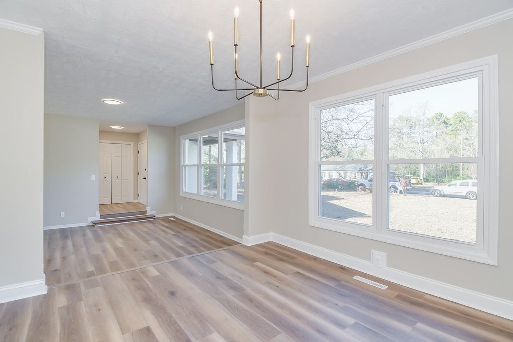 Completely updated ranch home on a flat one-acre lot in the heart of Aiken. This fully remodeled 4-bedroom, 2.5-bath residence offers over 2,300 square feet of stylish, open-concept living space. Updates include new LVP flooring throughout, a brand-new kitchen with quartz countertops, modern cabinetry, and all-new appliances. The kitchen flows seamlessly into the living room, highlighted by abundant natural light, vaulted ceilings, and a fireplace that is perfect for everyday living and entertaining. The master suite features a walk-in closet, tiled shower, and direct access to the back deck. Three additional bedrooms and a full bathroom are located down the hall, offering privacy and flexibility. Step outside to a new deck overlooking the expansive, fenced backyard, which is ideal for relaxing or hosting guests. This move-in-ready home combines space, updates, and location. Schedule your private showing today.