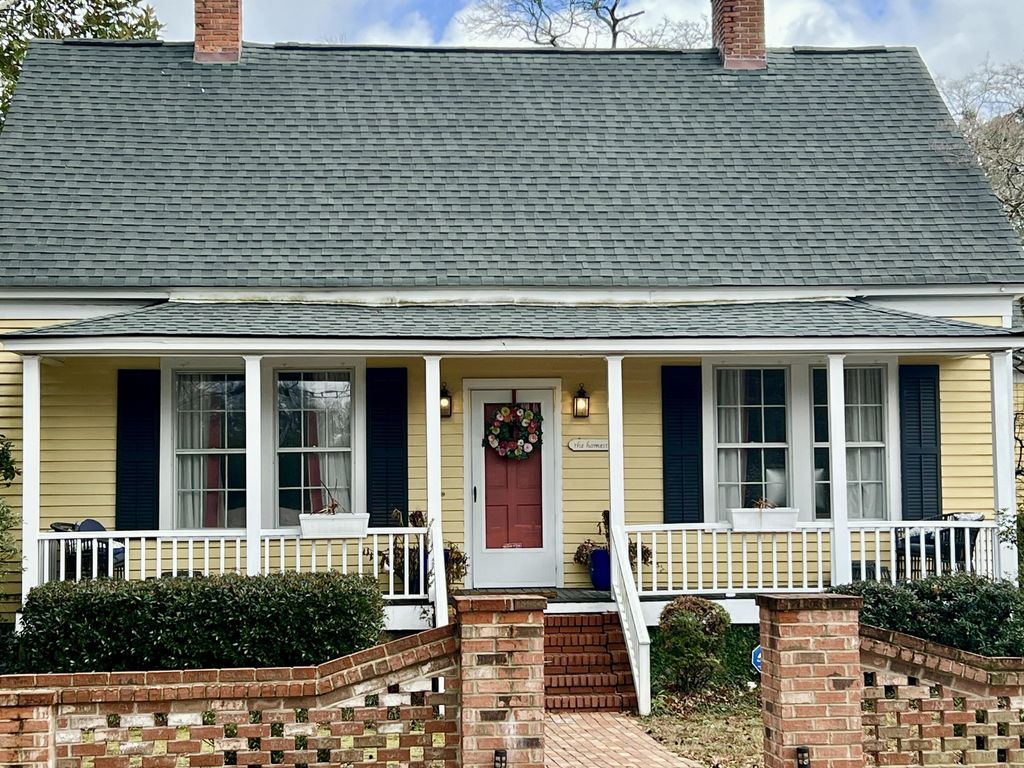 Charming 1920's ''Sand Hills'' cottage in AIken's Historic District. Short walk to downtown, 5 blocks to The Willcox. Beautifully updated with kitchen-den combination. Den has vaulted ceiling and library shelves. Four fireplaces total, three of them with gas logs. Formal dining and sitting rooms. Office, or third bedroom. Large master suite with walk-in closet. On-demand hot water. Whole-house generator. Mud room/laundry room conveniently adjacent to driveway. Granite counter tops in kitchen, plus 2 wall ovens, 4-burner gas cooktop, dishwasher, and microwave. Pine floors, plus ceramic tile in bathrooms. Private brick patio with roof. Superb 832 sq.ft. guest cottage (built 2018) with sitting room, kitchen, bedroom, bathroom and laundry. Fenced yard with dog run. This property is part of an estate and can close once the house has passed through probate.