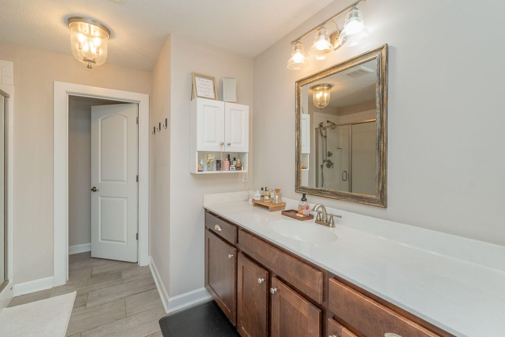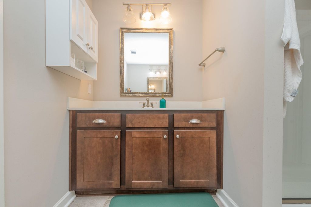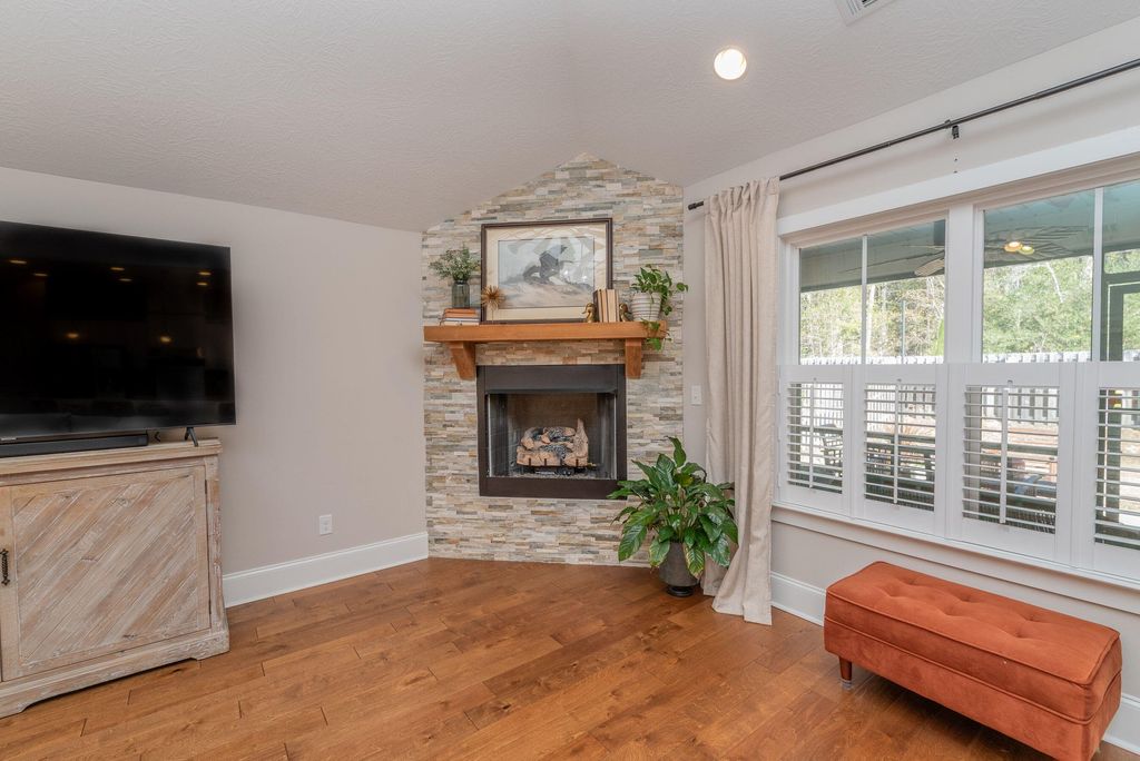 High end upgrades makes this brick ranch one of a kind. City amenities but only county taxes. Enjoy the following extras: Bosch dishwasher, 5 burner gas stove, entire home generator, luxury primary bath, closet and sound proof room w/separate air unit. Engineered flooring thru out. Safe/media room. 3 zone heating /.air. A screened porch, private with fencing and a fireplace for entertaining. Rainbird sprinkler and low annual HOA