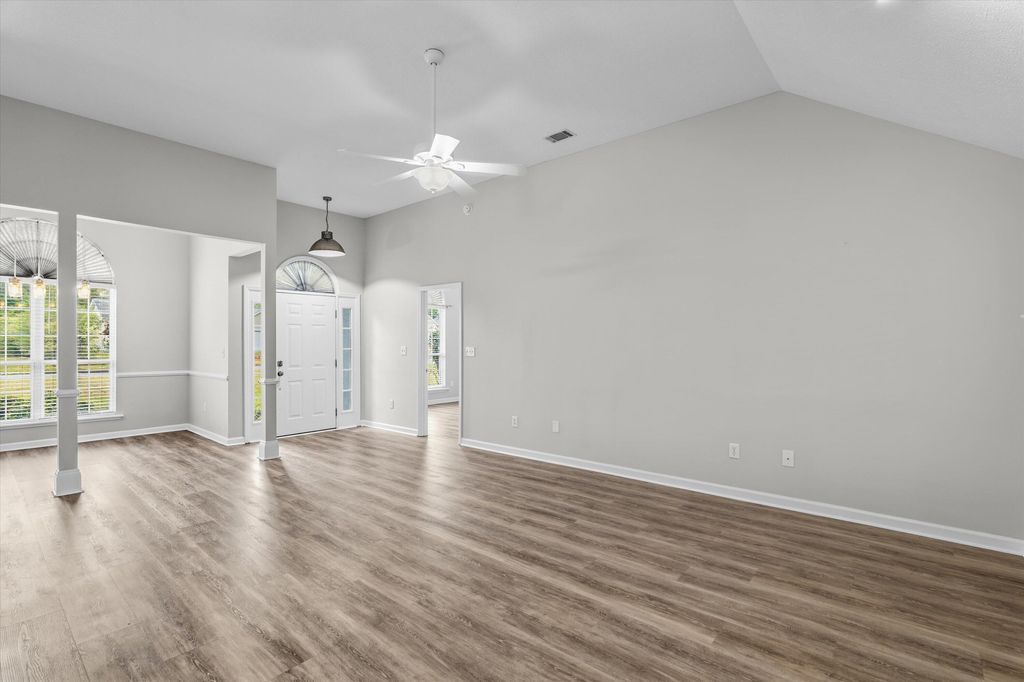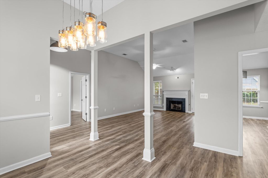 From the moment you walk through the front door, you can feel it "” that sense of calm, comfort, and belonging that only the right home can give. Soft natural light pours through graceful arched windows, dancing across beautiful hardwood floors that seem to glow with warmth. Every detail feels intentional, every space inviting. The open layout brings everyone together. The great room "” with its high vaulted ceiling and cozy fireplace "” is made for both quiet evenings and laughter-filled gatherings. The kitchen is the true heart of the home, where conversations flow as easily as the morning coffee. With its elegant shaker cabinets, sleek stainless-steel appliances, custom tile backsplash, and cheerful breakfast nook, it's where meals become memories. At the end of the day, retreat to your private owner's suite "” a peaceful haven designed for rest and renewal. The spa-like bath offers double vanities, a deep soaking tub, and a walk-in shower that melts the stress of the day away. Step outside and breathe in the serenity of your own backyard paradise. A screened porch and open patio overlook lush landscaping framed by a privacy fence "” the perfect spot for grilling out, morning yoga, or stargazing under the Georgia sky. Every inch of this home has been thoughtfully cared for, from the custom blinds and framed mirrors to the tiled baths and spacious two-car garage. Conveniently located with easy access to the freeway, you'll enjoy a quick commute to work, schools, or weekend adventures "” plus shopping, dining, and everyday conveniences just minutes away. With neighborhood walking paths and a playground nearby, it's easy to stay active and connected to your community. Come see for yourself "” this isn't just a house. It's a place where stories begin, memories grow, and hearts feel at home.