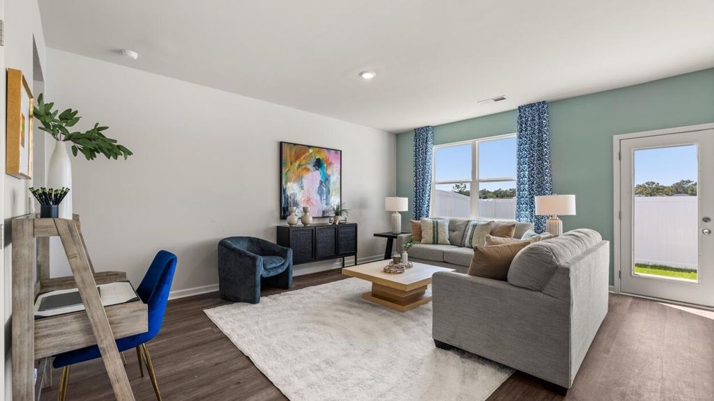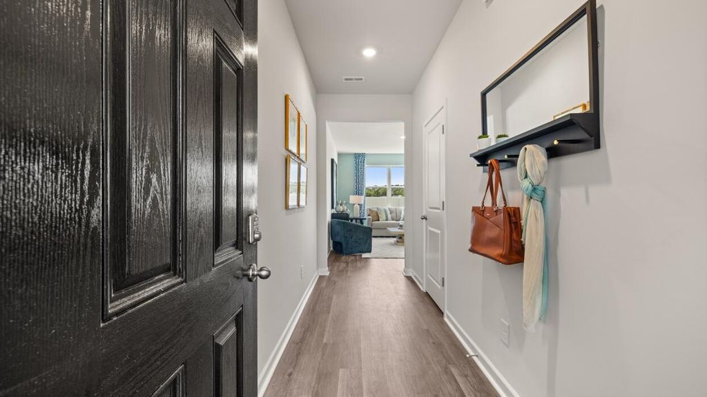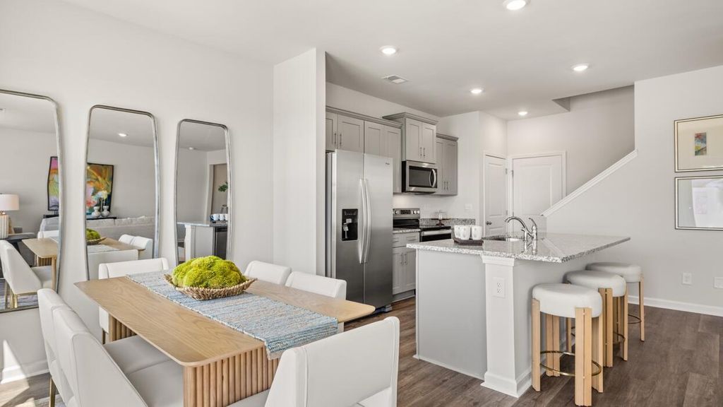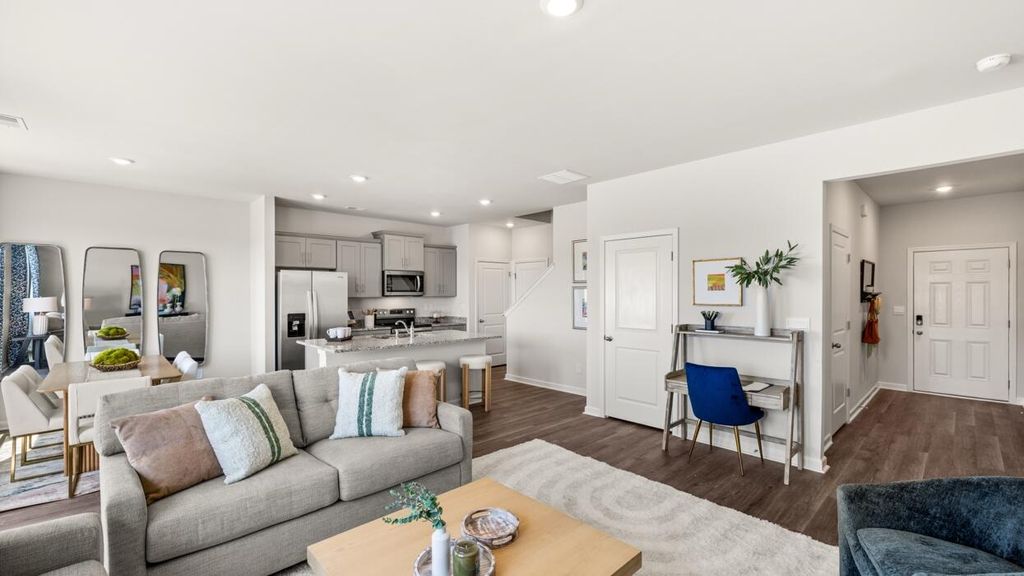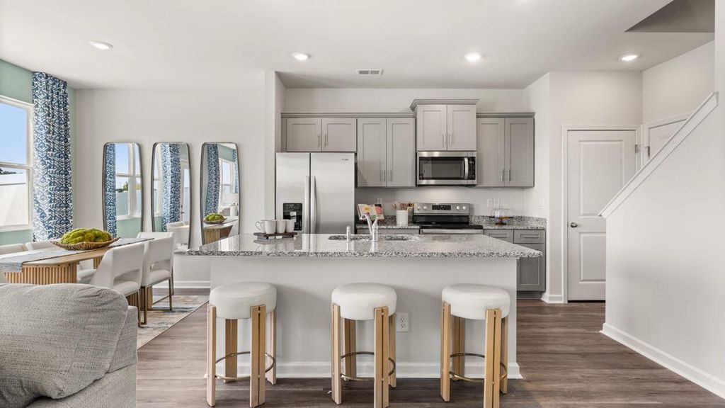 UP TO 6,000 IN SELLER PAID CLOSING COST & RATES AS LOW AS 4.99% W/ PREFERRED LENDER FOR QUALIFIED BUYERS!! The Tatum floorplan at Rushing Waters offers 3 bedrooms, 2 full bathrooms and a convenient powder room in a two-story townhome covering 1,635 sq feet. There is a 2-car garage with plenty of space for vehicles plus some extra storage. This contemporary townhome is built for the way you want to live, featuring an open concept design. The main level offers a family room that is filled with natural light. The well-appointed kitchen includes modern cabinetry, stainless steel appliances and a pantry, plus an island with bar stool seating. An adjoining casual dining space ensures everyone can stay connected for family gatherings, hosting the holidays and dinners with friends. Upstairs offers a must-see private bedroom suite that spans the entire width of the front of the home. An adjoining bath including dual vanities, shower and a large closet ensure plenty of storage. The two secondary bedrooms are spacious and airy and include ample closet space. A shared hall bath plus a convenient laundry complete this design. And you will never be too far from home with Home Is Connected.® Your new home is built with an industry leading suite of smart home products that keep you connected with the people and place you value most. Photos used for illustrative purposes and may not depict actual home.