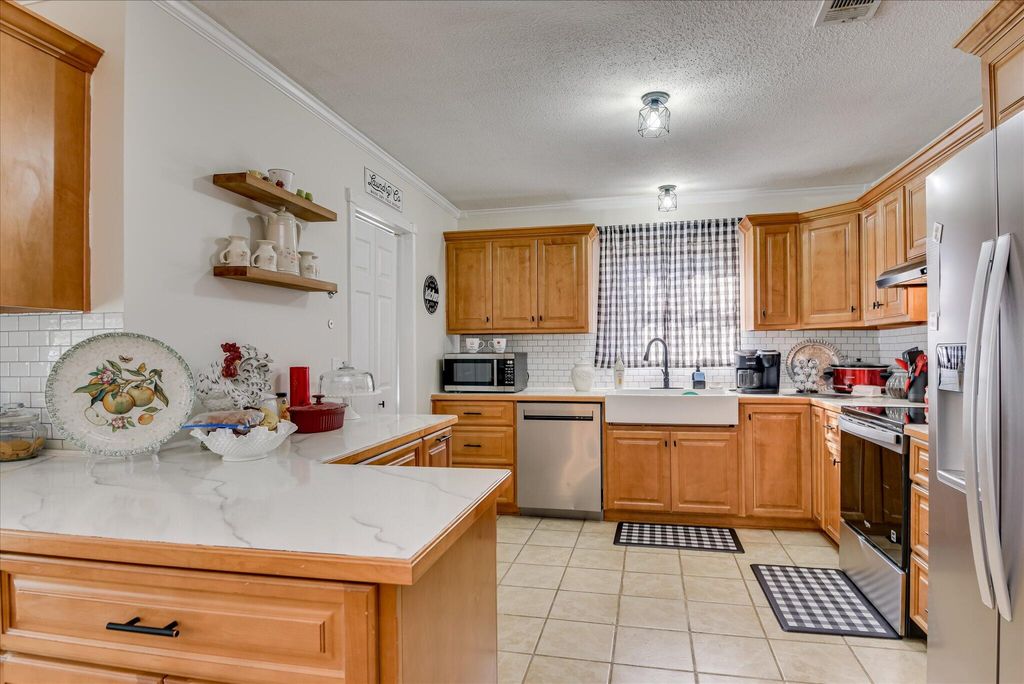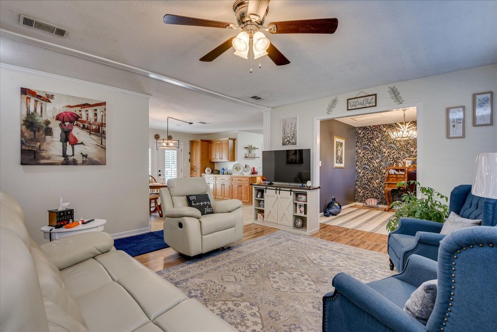 Designed for today's eco-conscious buyer who loves to entertain, this thoughtfully laid-out single-story ranch offers 4 bedrooms, 2 beautifully updated bathrooms, and a flexible bonus space ideal for a home office, fitness room, or play area. Solar panels provide energy efficiency and long-term savings, aligning perfectly with a modern, sustainability-minded lifestyle. Additional monthly savings with no city taxes! The heart of the home is the expansive kitchen, featuring abundant counter space that flows effortlessly into the living and dining rooms- perfect for hosting gatherings both large and small. Step outside to your private backyard retreat, complete with a covered back porch, in-ground pool, storage building and full fencing for comfort, privacy, and year-round enjoyment. Recent bathroom updates add a fresh, move-in-ready feel, while the home offers an excellent opportunity for a new owner to personalize a few cosmetic touches and add instant value without major projects. Conveniently located near top schools, shopping, dining, and medical facilities, this home combines smart energy choices, functional design, and an unbeatable location.