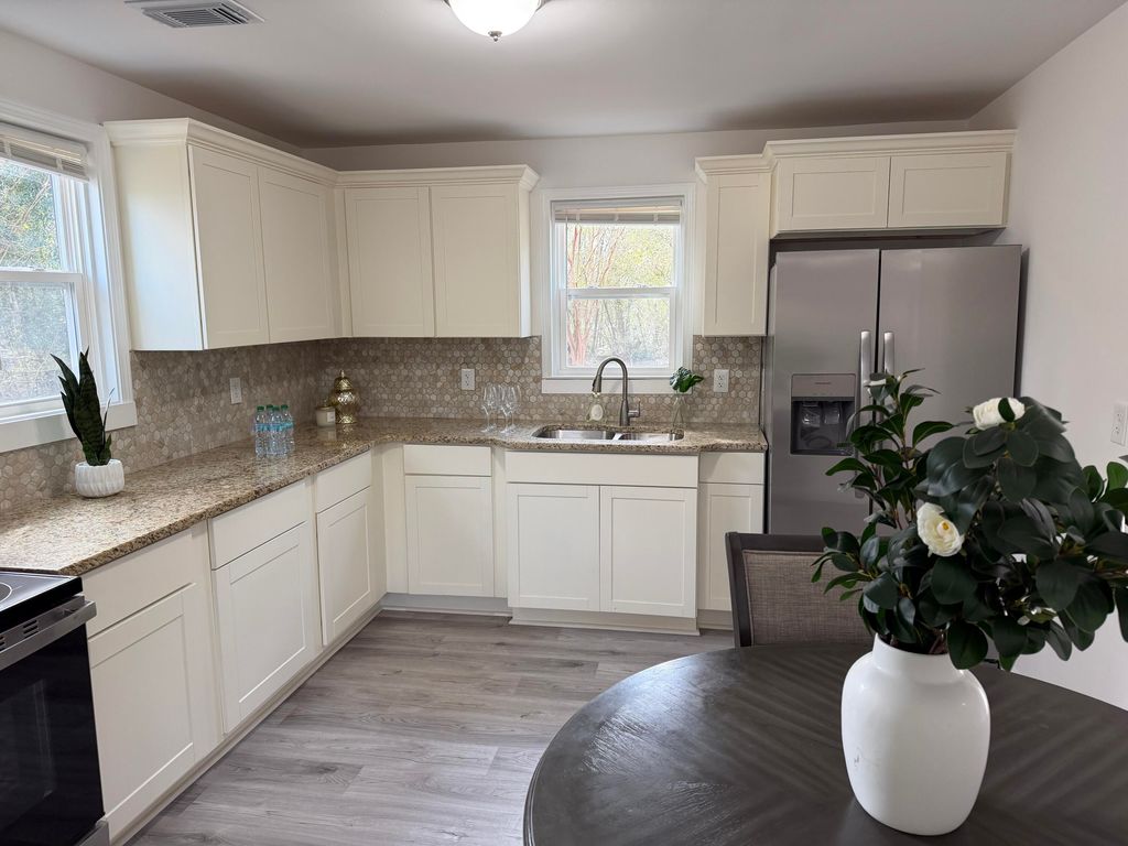Beautifully remodeled home in Downtown Edgefield! New roof, windows, LVP floors, sheetrock, plumbing, wiring, HVAC, light fixtures, bathrooms, kitchen, freshly painted exterior.... NEW NEW NEW! Gas fireplace in living room for cozy winter evenings. LVP floor through out home make it a breeze to clean and maintain. New stainless steel appliances in kitchen with sold surface counter tops. This home will not last long!