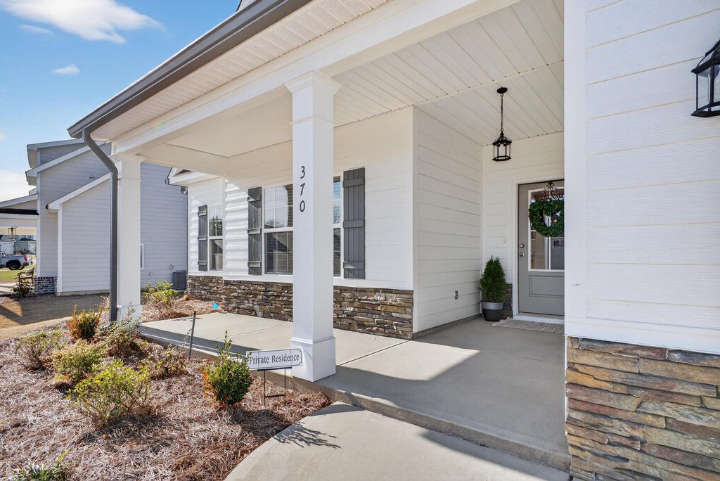 New Construction Home for Sale in Aiken, SC - 5 Bedrooms in The Sanctuary | Built 2025 | Washer & Dryer Included. Welcome to 370 Longford Street in The Sanctuary, one of the most desirable planned communities in Aiken. Built in 2025, this 5-bedroom, 3-bath single-family home offers 2,778 square feet of thoughtfully designed living space on a larger homesite -- delivering the layout, finishes, and flexibility today's buyers are actively searching for in Aiken real estate. If you're looking for new construction homes in Aiken, SC with 5 bedrooms, open-concept design, and move-in-ready convenience, this property checks every box. Open-Concept Living with Modern Finishes: The main level features a seamless flow between the kitchen, dining area, and living room -- ideal for entertaining, hosting holidays, or everyday living. A stylish fireplace anchors the living space, adding warmth and architectural character. Contemporary finishes throughout offer a polished yet timeless aesthetic that appeals to both homeowners and long-term investors. The spacious kitchen connects naturally to the heart of the home, allowing you to stay engaged with guests or family while cooking and gathering. Flexible 5-Bedroom Floor Plan Five true bedrooms provide exceptional versatility: * Dedicated home office * Guest suite * Fitness or hobby room * Multigenerational living setup * Playroom or media space With 3 full bathrooms and a smart layout, privacy and functionality are built in. Outdoor Living & Larger Lot Advantage: Enjoy both a covered front porch and a screened in rear patio, expanding your living space outdoors. The fully fenced backyard offers privacy and usability -- a highly sought-after feature for buyers reviewing homes for sale in Aiken with yard space. Additional exterior upgrades include: * Gutters * Larger homesite * Fully fenced yard Community Lifestyle in The Sanctuary: The Sanctuary is a thoughtfully designed neighborhood featuring: * Sidewalks and walking paths * Streetlights * Green spaces * Fenced community garden (protected from deer and wildlife) * Neighborhood park directly across the street Conveniently located near downtown Aiken, shopping, dining, and major employment hubs, this location supports both daily convenience and long-term value growth. Added Value: The seller is including the washer and dryer, offering immediate move-in convenience and added value for buyers. For buyers searching online for new construction homes in Aiken, South Carolina, 5-bedroom homes in The Sanctuary, or move-in-ready homes with fenced yards in Aiken, 370 Longford Street presents a standout opportunity in today's market. Schedule your private showing and experience the space, layout, and lifestyle this 2025 build offers.