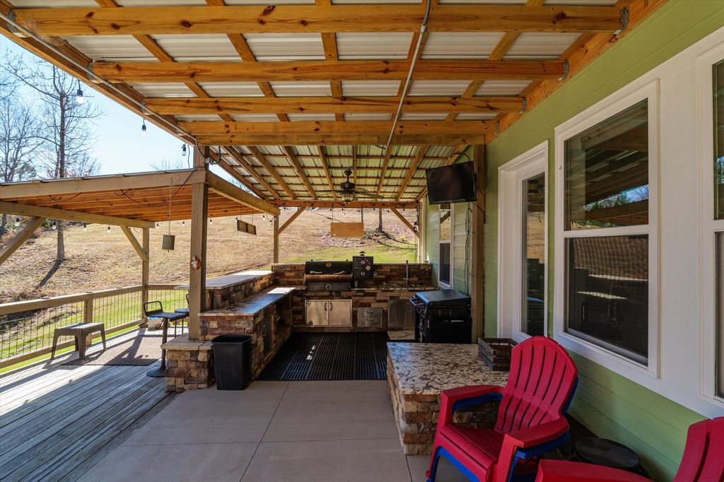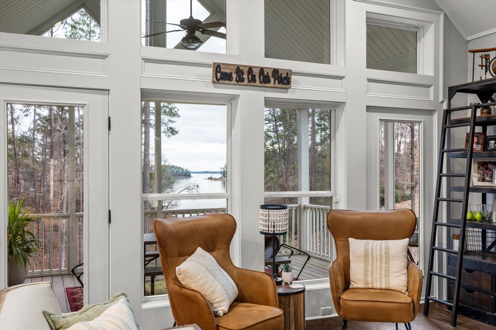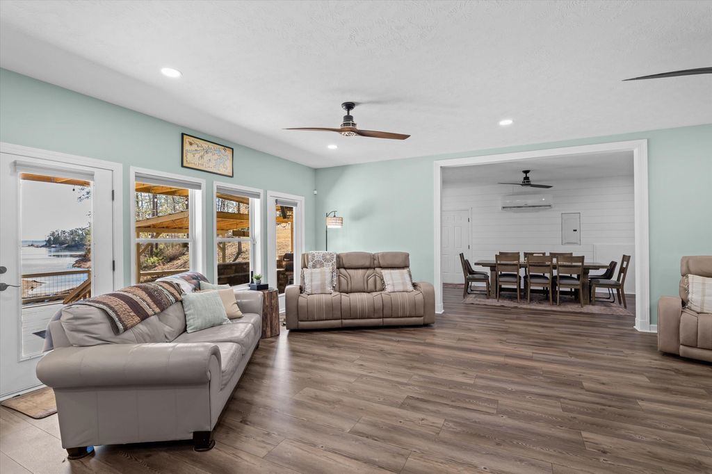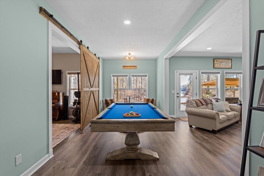 STUNNING LAKE FRONT HOME with PRIVATE DOCK and BOAT PARKING Nestled on a one-acre lot in a hidden cove, this 3,500-square-foot lakefront home offers unparalleled tranquility and breathtaking views of the Savannah River at the mouth of Carolina's Little River. The main level features a spacious open floor plan with engineered hardwood floors, a great room with vaulted ceilings, a cozy fireplace, and expansive windows framing the stunning lake views. The gourmet kitchen is a chef's dream, featuring granite countertops, stainless steel appliances, double ovens, and shaker-style cabinets. It seamlessly connects to a breakfast nook and a dining area, leading out to a large screened porch and a vaulted ceiling rear deck. The owner's suite includes private deck access, a luxurious en-suite bath with double vanities, a large glass shower, a soaking tub, and a walk-in closet filled with natural light. The main level also includes two additional bedrooms and a full bath, along with a convenient laundry room adjacent to the kitchen and pantry. Descend to the lower level, designed for entertainment and extended living. This level features a billiard room, a massive entertainment room with a 98-inch TV, theater seating, and a large wet bar. The fully furnished lower-level kitchen is complete with a stove/range combination, microwave, stainless steel sink, dishwasher, and ample cabinet space, Corian countertops and a massive walk-in pantry with double refrigerators and bakers shelving. A large 4th bedroom and a private office that can serve as a fifth bedroom as well as a full bath with large walk-in shower. Just mere steps away from the home, you'll find a private dock complete with a boat slip, offering easy access to the water for boating and leisurely activities. Step outside to a 500-square-foot covered patio with ceiling fans and a flat-screen TV, leading to a 240-square-foot covered outdoor kitchen and bar area, perfect for al fresco dining. Adjacent to the patio is a 340-square-foot deck, ideal for soaking up the sun or stargazing at night. This exceptional home combines luxury, comfort, and natural beauty, offering the perfect blend of family living and entertainment.