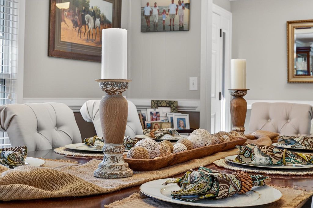 Nestled on just under 1.5 acres, this beautifully landscaped and captivating 3-bedroom, 2-bath brick ranch offers the perfect blend of comfort, style, and everyday functionality. From the moment you arrive, recent front-yard improvements"”including newly installed Palisades Zoysia"”enhance the home's curb appeal and set the tone for what's inside. Step through the inviting front entry into open-concept living, where the dining area enjoys peaceful views of the front yard and flows seamlessly into a bright, airy living space. The stunning brick fireplace serves as the heart of the room, creating a warm and welcoming atmosphere, all complemented by beautifully maintained hardwood floors throughout the main living areas. The chef's kitchen is a true highlight, featuring stainless steel appliances, gleaming granite countertops, a statement backsplash, and a generous eat-in island perfect for casual dining. Just off the kitchen, a cozy breakfast nook provides the ideal spot for coffee or relaxed meals. The spacious primary suite offers a serene retreat with vaulted ceilings, abundant natural light, and direct access to the backyard through a sliding door"”perfect for enjoying the outdoor spaces. The ensuite bath feels like a spa, complete with a large tiled walk-in shower with rainfall shower head, double vanity, and elegant finishes. Two additional bright and spacious bedrooms offer flexibility for family, guests, or a home office, while the secondary bathroom features a beautiful soaking tub for ultimate relaxation. The sunroom is a standout space, filled with natural light and offering panoramic views of the sparkling pool"”an inviting spot to enjoy year-round. Outside, the expansive backyard is designed for entertaining and relaxation, featuring a custom-built in-ground fire pit, plenty of room for grilling and gatherings, and a newly added parking area that easily accommodates multiple vehicles. Recent backyard enhancements include the addition of Carolina Sapphire and Quick Frost Arizona cypress trees, thoughtfully planted to create a future privacy and sound buffer as they mature. The fully fenced yard provides privacy and ample space for pets or animals to roam, while a large storage shed offers room for outdoor equipment and tools. Equestrian enthusiasts will appreciate the impressive 24 x 48 workshop/barn with two horse stalls and a mini stall, along with space to easily pull a trailer alongside. Additional amenities include an additional 12 x 24 storage shed, a two-car garage, mature landscaping throughout the property, and the option for a nearby country club membership for added lifestyle convenience. This home truly offers the best of both worlds"”peaceful country living paired with thoughtful updates, outdoor amenities, and convenient access to nearby shopping and dining. The sellers have compiled a detailed list of highlights, upgrades, and improvements made over the years"”be sure to ask your agent for a copy. Don't miss the opportunity to make this exceptional property your own.