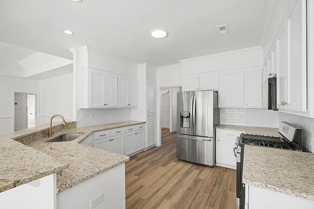 ***Back on the market at no fault of the seller*** Beautifully updated 4-bedroom, 2.5-bath home offering a desirable split floor plan and thoughtfully refreshed from top to bottom. From the moment you enter the foyer, you're welcomed by new flooring, fresh paint, and modern lighting throughout. Straight ahead, the spacious living room features a cozy fireplace with a newly updated facia and tile surround, creating a warm and inviting focal point. To the left of the entry, the formal dining room flows seamlessly into the fully updated kitchen, making entertaining effortless. The kitchen showcases new shaker-style cabinet faces, updated hardware, granite countertops, a new sink and faucet, garbage disposal, and updated stainless steel appliances including a refrigerator, dishwasher, microwave, and gas range oven. A sunlit breakfast area just off the kitchen overlooks the backyard, creating an inviting space for morning coffee or casual meals. The primary suite is privately situated on the left side of the home featuring a tray ceiling and an ensuite bath with a walk-in shower and garden tub. On the opposite side, three well-sized bedrooms share a full bath, creating an ideal layout for guests, family, or a home office setup. An interior door and stairs provide access to a walk-up attic offering abundant storage and the opportunity to convert the space into a flex room, if desired. Additional updates include removal of popcorn ceilings, all new electrical outlets and switches, new blinds, new flooring throughout (LVP and carpet), new lighting fixtures and ceiling fans, two new sliding glass doors installed prior to closing, and fresh exterior stucco paint. Bathrooms throughout have been refreshed with painted vanities, new hardware, updated sink and shower fixtures, and new toilets. Residents enjoy a junior Olympic-size pool, clubhouse, tennis courts, playground, scenic walking trails, and a community lake with picnic areas. This move-in-ready home combines modern updates with a functional layout located within the highly desirable Rivershyre community--perfect for today's lifestyle!