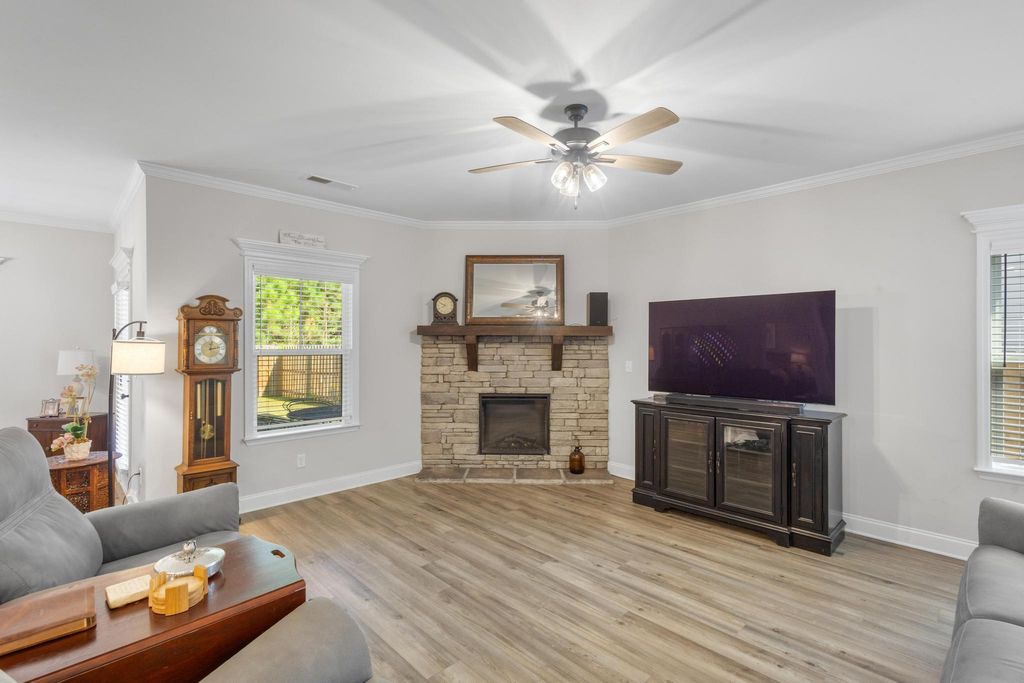 Charming Modern Ranch in The Sanctuary! Welcome to this inviting 3 bedroom, 2 bathroom modern ranch home with an additional flex room upstairs. Nestled on a .15-acre lot in the sought-after Sanctuary subdivision of Aiken, SC! Step inside to an open floor plan filled with natural light, where a spacious living area featuring a stone fireplace and a luxury kitchen becomes the centerpiece of the home. Featuring granite countertops, a stylish tiled backsplash, stainless-steel appliances including refrigerator, and a spacious island, the kitchen flows seamlessly into a sunny breakfast nook overlooking the backyard"”perfect for enjoying your morning coffee. The owner's suite is a bright and spacious retreat, complete with a spa-inspired EnSuite boasting a double sink vanity, walk-in shower, and a garden tub with tile surround. Two additional bedrooms are generously sized and share a well-appointed bathroom with a tub/shower combo. The upstairs flex room is a blank canvas ready to be turned into an office or game room. Step outside to your covered patio and enjoy a spacious fenced backyard, ideal for grilling, entertaining, or letting pets play freely. The seller has recently added gutters and Vivint home security system, providing both function and peace of mind for the new homeowner. Living in The Sanctuary means more than just a home"”you'll enjoy sidewalks for evening strolls, a large community garden, and a neighborhood walking trail. All this, just minutes from Downtown Aiken, Bruce's Field, Hitchcock Woods, equestrian eventing venues, shopping, and fine dining. This is where location meets lifestyle. Don't miss your chance to call The Sanctuary home!
