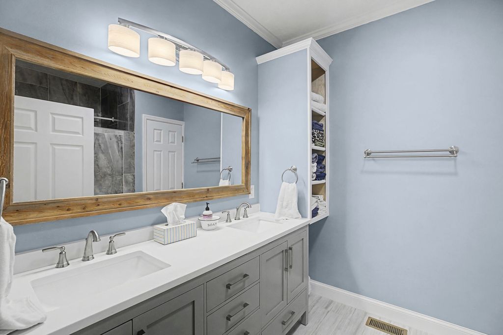 Welcome to 401 Sudlow Lake Road! Gorgeous brick home situated on over 2 beautifully landscaped acres, offering space, privacy, with exceptional updates throughout! This meticulously maintained 3-bedroom, 2.5-bath residence has been recently appraised and is ready for its new owners! Recent improvements include luxury vinyl plank flooring, updated lighting, custom plantation shutters, new blinds, and a gorgeous updated owner's suite bathroom! The well-appointed kitchen features granite countertops, stainless steel appliances, gas range, wine refrigerator, under-cabinet lighting, breakfast area, and a spacious butler's pantry! The fabulous living room boasts soaring 18-foot ceilings, built-in cabinetry, gas log fireplace with blower, and French doors! A formal dining room and flexible home office or den provide additional and convenient extra living space! The primary suite is conveniently located on the main level! Upstairs, a stately staircase with integrated lighting overlooks the living area and leads to two additional bedrooms and a full bath! The laundry room offers added cabinetry, while the oversized two-car garage includes an epoxy floor, mini-split unit, and attached utility room with sink and hot/cold water! Enjoy outdoor living on the expansive 40x16 deck with power outlets, plus a 12x12 screened-in porch"”ideal for entertaining. The fully fenced backyard includes a 16x10 outbuilding, landscape lighting, sprinkler system, gutters, and a well for irrigation that can also be connected to the home! HVAC is less than three years old & recently serviced! Septic recently serviced! Beautiful, spacious, and move-in ready in a desirable location! Call TODAY to schedule your private tour!