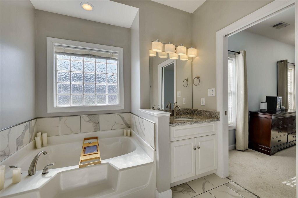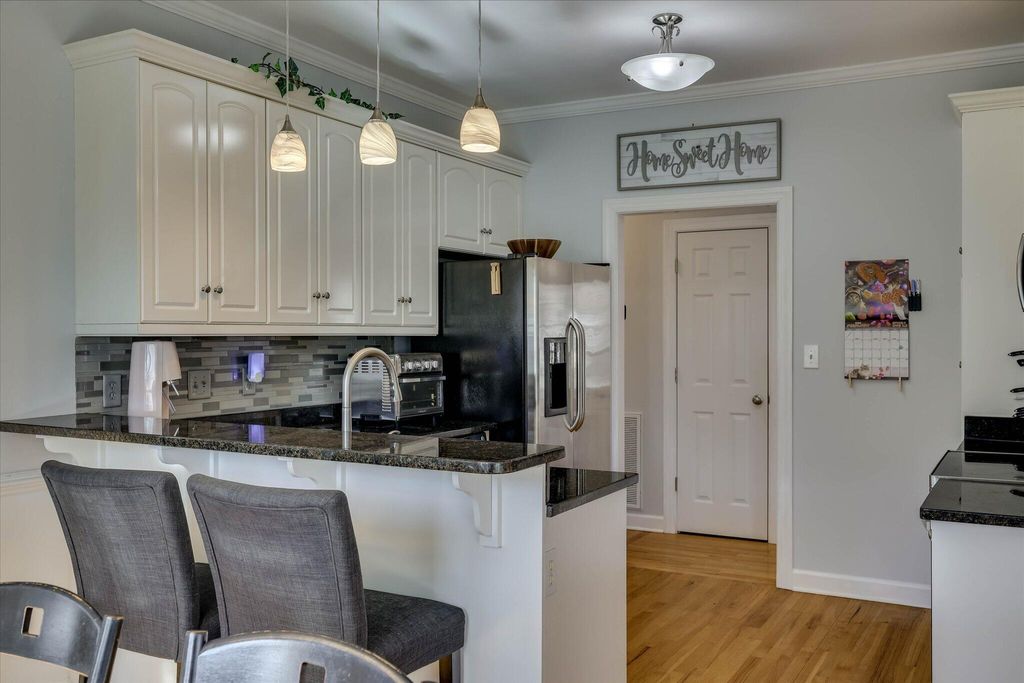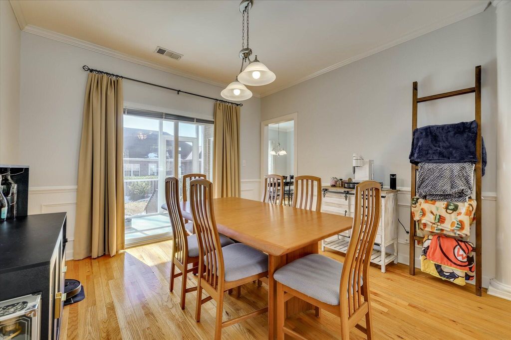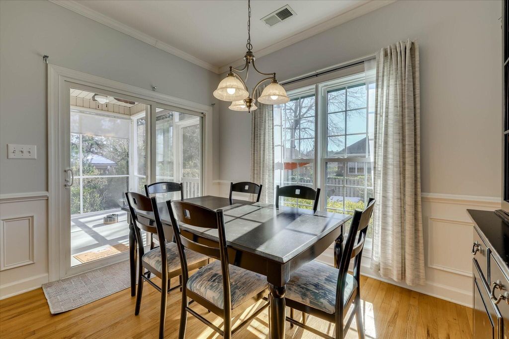 A charming rocking chair front porch warmly welcomes you into this beautifully maintained home featuring hardwood floors throughout the main living areas. The living room offers a cozy gas fireplace with attractive tile and mantlepiece, which opens up to the formal dining room with classic wainscoting and accent columns. The kitchen is a standout with granite countertops, a fabulous tile backsplash, built-in microwave, new stainless steel oven, pendant lighting, breakfast bar, and a pantry with convenient pullout drawers. The adjoining breakfast room, also accented with wainscoting which together with the dining room overlooks the beautifully updated backyard with a custom-built stone patio covered by a 10' X 10' pergola with sails. Enjoy outdoor living year-round on the wonderful covered back porch "” now completely screened in! The owner's suite is a relaxing retreat with a spacious bath featuring dual granite-top vanities, garden tub, separate tile shower, private water closet, and a generous walk-in closet. Two additional main-level bedrooms share an upgraded guest bath with granite countertops and tile flooring. The laundry room is conveniently located with cabinetry for extra storage. Upstairs, you'll find a large 4th bedroom or bonus suite with its own full bath, tile floor, and oversized walk-in closet "” perfect for guests, hobby or workout room, or multi-generational living. New roof was installed in 2024, and new upgraded HVAC was installed in 2025! A spacious 2-car garage with added space for storage completes the home. You will enjoy access to miles of scenic walking trails and the option to join two private country clubs offering world-class amenities. If you are searching for a move-in ready home in the prestigious gated community of Woodside Plantation, this one is for you! **See uploaded improvement sheet for additional details