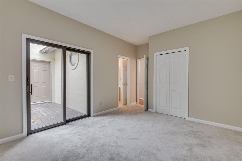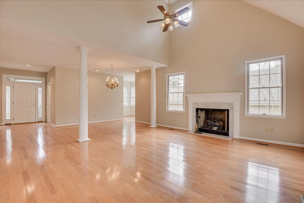 GOLF PROPERTY - GATED COMMUNITY! Comfortable, casual patio home, 4 BR/3 FULL BATH's, bright, open concept, with walls of windows and serene golf/wooded views. The great room with cozy fireplace, flows seamlessly into the sunroom, extending the living area and offering a front-row seat to tranquil wooded and golf course views. Perfect for unwinding after a busy day, Also on the main level is the primary ensuite and a second bedroom (or home office) with closet and direct access to a full bath The upper level offers two additional bedrooms, a full bath, and abundant walk-in attic storage. Located on quiet cul-de-sac street near Woodside's paved, picturesque walking trail. All residents have access to multiple parks, lakes and nature trails. OPTIONAL MEMBERSHIP to Woodside and/or The Reserve Club, offering world class amenities. Enjoy golf, swimming, PICKLEBALL, tennis and croquet. Each club house features dining and event facilities. BRING YOUR SNEAKERS!
