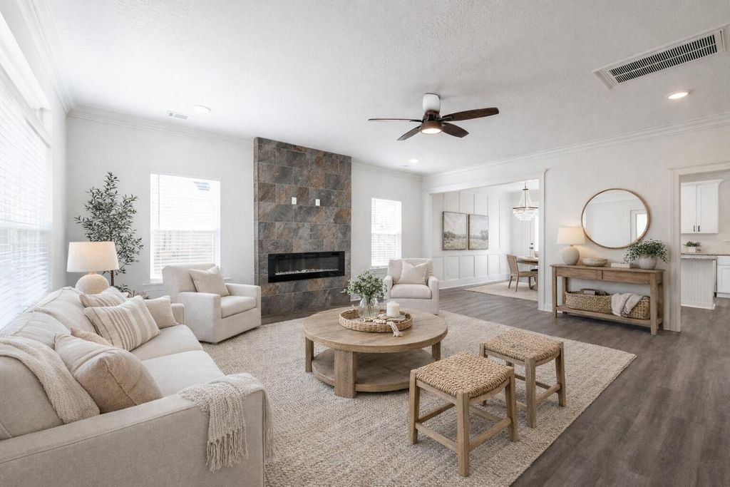 Stunning new construction home with owner's suite on the main level that perfectly blends modern design with timeless elegance! Step inside to discover easy maintenance LVP flooring throughout the main living areas and an inviting layout ideal for everyday living and entertaining! The living room is a true focal point, highlighted by a beautiful tile-surround fireplace, outlet ready for a TV and a ceiling fan, creating a warm and welcoming atmosphere! Just beyond, the dining room impresses with judge's paneling and a stunning chandelier that sets the stage for memorable gatherings! The kitchen is a showstopper, featuring granite countertops, a large island with snack bar seating, tiled backsplash, dishwasher, stove, and built-in microwave- perfect for both casual meals and hosting guests! The spacious owner's suite offers a peaceful retreat with crown molding and a ceiling fan! The luxurious ensuite bath boasts granite countertops, a double sink vanity, separate LED backlit mirrors, a private water closet, soaking tub, and a gorgeous tiled shower with glass door, along with a generous walk-in closet! Three additional bedrooms, each with ceiling fans and crown molding, provide comfortable accommodations, while a full bath with granite countertops and LED mirror and a stylish half bath with pedestal sink and framed mirror add convenience! The laundry room is accented by a beautiful custom-made sliding door, adding a touch of character and craftsmanship! Step outside to enjoy the deck, perfect for relaxing or entertaining! This exceptional home offers quality finishes, thoughtful details, and modern comfort - ready for you to move in and enjoy! Great location with easy access to SRS, Fort Gordon and so much more! Hurry, this gem is priced to sell!