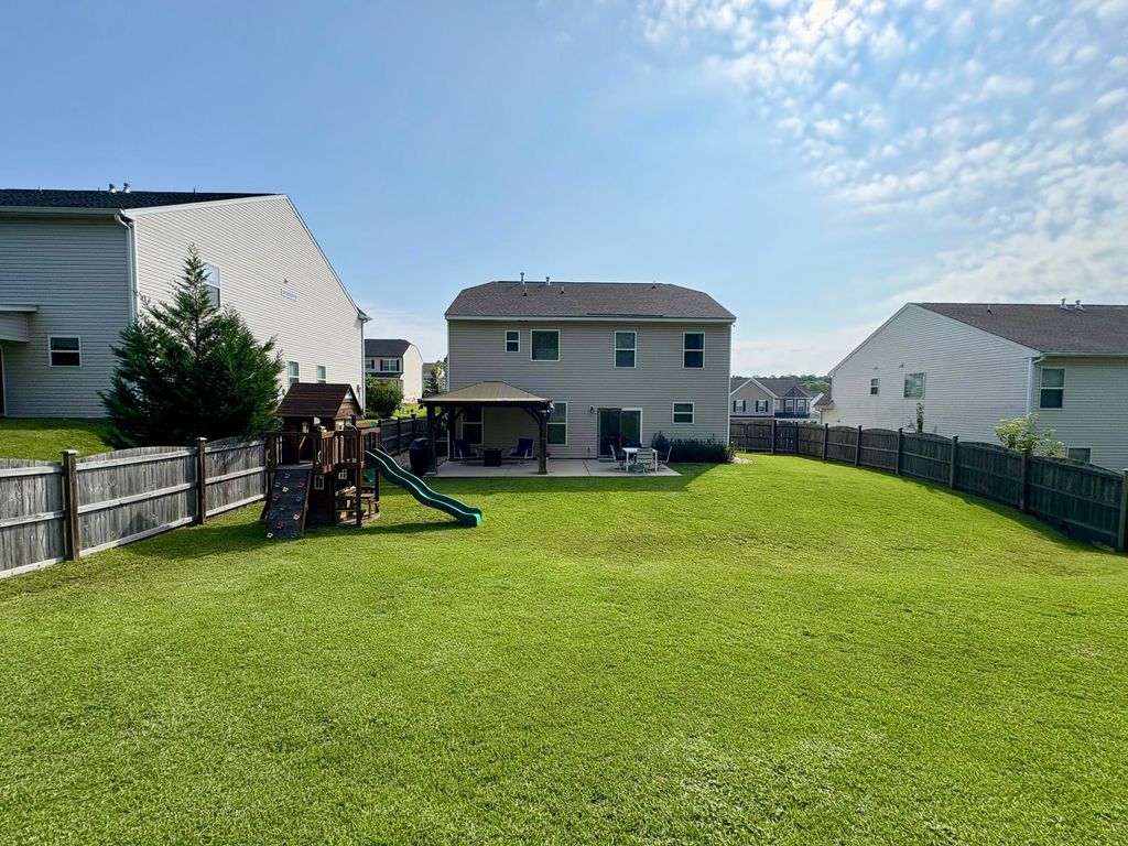 Are you looking for an amazing Lexington community that offers closeness to all things, a community pool and much larger back yards! Welcome Home!Arriving, you'll appreciate the cute front porch, waiting on your rocking chairs and fall decorations! Step inside this beautiful home and you'll be greeted by a spacious foyer that leads into an open, inviting floor plan. To your left, a large dining area with abundant natural light that offers the perfect place to gather for family meals, entertaining or could be the perfect flex room if formal dining is not your thing! Continue down the hallway into the main living area, where the kitchen, breakfast nook, and living room flow together. The kitchen features rich stained wood cabinets, a center island, pantry, and plenty of storage. The breakfast area is ideal for quick meals or snacks while staying connected with family! Just beyond, is the living room provides a comfortable space to relax! This area overlooks the amazing backyard! Upstairs, a wide hallway connects all of the bedrooms and the laundry room. Double doors open to the private primary suite with a large bathroom featuring a dual vanity, soaking tub, and separate shower. Conveniently located across the hall, is the large laundry room; super nice that it's close to all of the bedrooms!. The three bedrooms share a huge bathroom with a tub/shower combo! The true showstopper is the outdoor space! One of the larger lots in the neighborhood, the fully fenced backyard is a must see if you have kids, pets or enjoy a good cookout! A large patio provides plenty of room for seating, while the gazebo and playground (both included with the home) create the perfect spot to just hang out!This home in Lexington combines comfort, convenience, and plenty of space both indoors and out--ready for you to make it your own! Home is eligible for a complete financeable loan with Foundation Mortgage Corporation