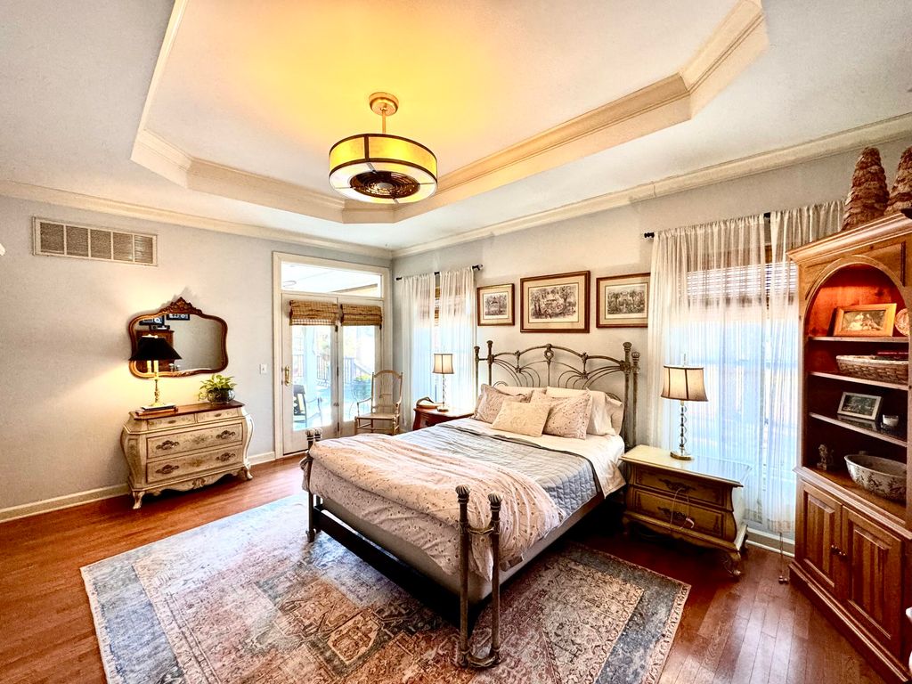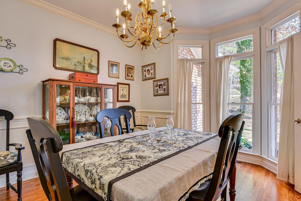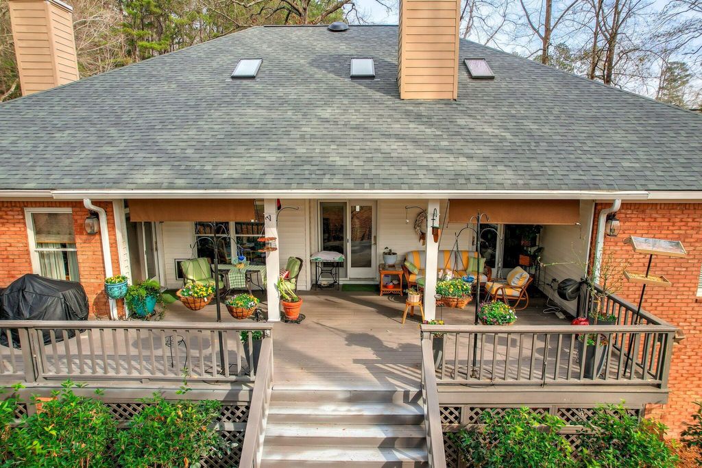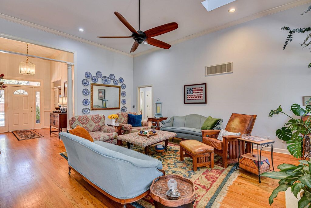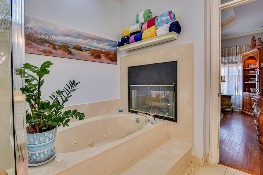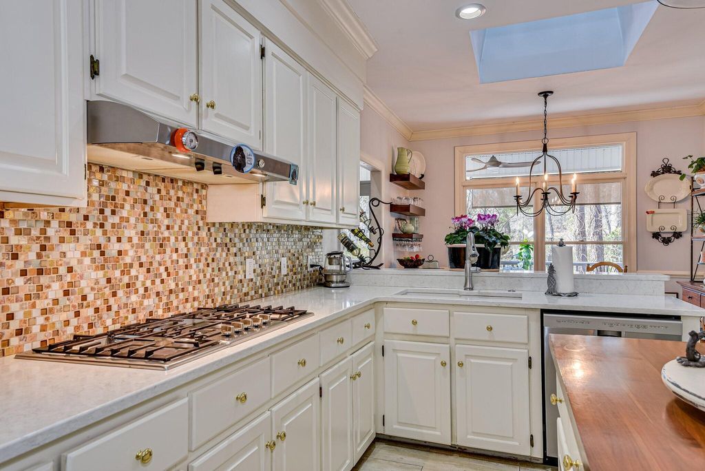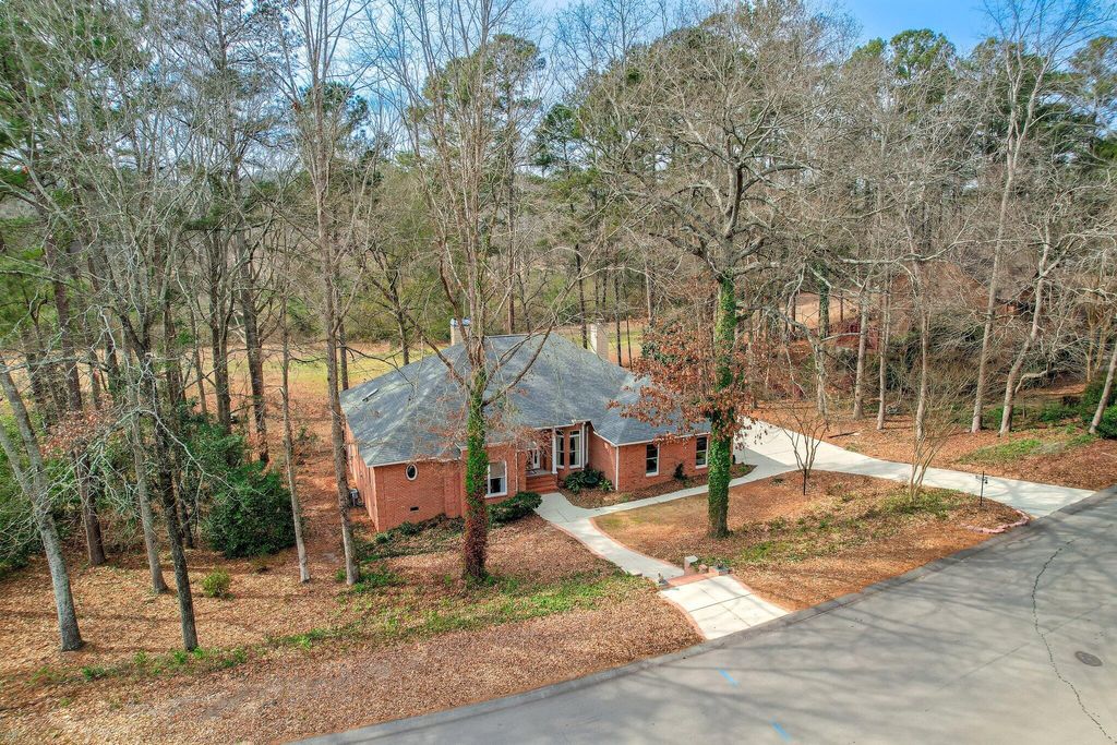 OPEN HOUSE SUNDAY MARCH 1ST 1-3. Experience a relaxed lifestyle in this beautiful, single-level brick home, which features numerous enhancements, including a new architectural shingle roof installed in July 2025. The gracious foyer connects the formal living and dining rooms, where transom windows and French doors invite the outdoors inside. Elegant hardwood floors extend throughout the living spaces. The spacious family room boasts soaring ceilings and a cozy gas fireplace, seamlessly opening to expansive outdoor living areas, including a Lowcountry covered porch equipped with a delightful hot tub. The updated kitchen is a chef's dream, featuring a five-burner gas cooktop, quartz countertops and a bright breakfast nook. This thoughtfully designed, split floor plan includes a private owner's bedroom suite, complete with a double-sided gas fireplace that serves both the bedroom and the luxurious primary ensuite bath. The primary suite also offers direct access to the covered porch and hot tub. On the opposite side of the home, you will find three additional bedrooms and two full baths. The interior contains fantastic closet space, while outside, a walk-in crawl space with a concrete floor provides additional storage options. The two-car garage includes a workshop for your special projects. This residence is nestled in a serene, park-like setting, conveniently located within walking distance of Hitchcock Woods, one of the nation's largest urban forests, boasting 70 miles of walking trails.