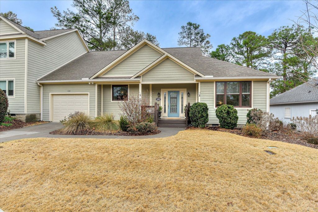 From the moment you step inside 121 Troon Way, the impact is immediate. Soaring vaulted ceilings, a dramatic wall of windows, and sun-drenched interiors create a space that feels both airy and chic. Perfectly positioned in the Reflections at Houndslake on the second hole with golf course views in the back & serene water views from the front porch, this beautifully updated 2-bedroom, 2-bath home delivers effortless style paired with true lock-and-leave convenience. The main living area is anchored by a warm fireplace and framed by expansive windows that flood the home with natural light throughout the day. Recently freshly painted and thoughtfully improved, the home features a tastefully upgraded kitchen and a designer custom primary closet, adding both polish and practicality. No detail has been spared including a heated/cooled garage. Every space has been curated to feel refined yet comfortable -- the ideal blend of super chic sophistication and relaxed Aiken living. Step outside and enjoy the ease of an HOA that handles all lawn maintenance, along with access to exceptional neighborhood amenities including a community pool, tennis courts, clubhouse, and golf course -- offering a true resort-style lifestyle. Whether you're seeking a full-time residence, seasonal escape, or low-maintenance investment, 121 Troon Way delivers that rare ''wow'' factor the moment you walk through the door. ⸻ Highlights "¢ Located on the 2nd hole of the golf course "¢ Peaceful water views "¢ Dramatic vaulted ceilings & wall of windows "¢ Newly painted interior "¢ Kitchen upgrades "¢ Designer primary closet "¢ Fireplace "¢ HOA-maintained lawn care "¢ Community pool, tennis, clubhouse & golf "¢ 2 bedrooms | 2 baths "¢ Move-in ready