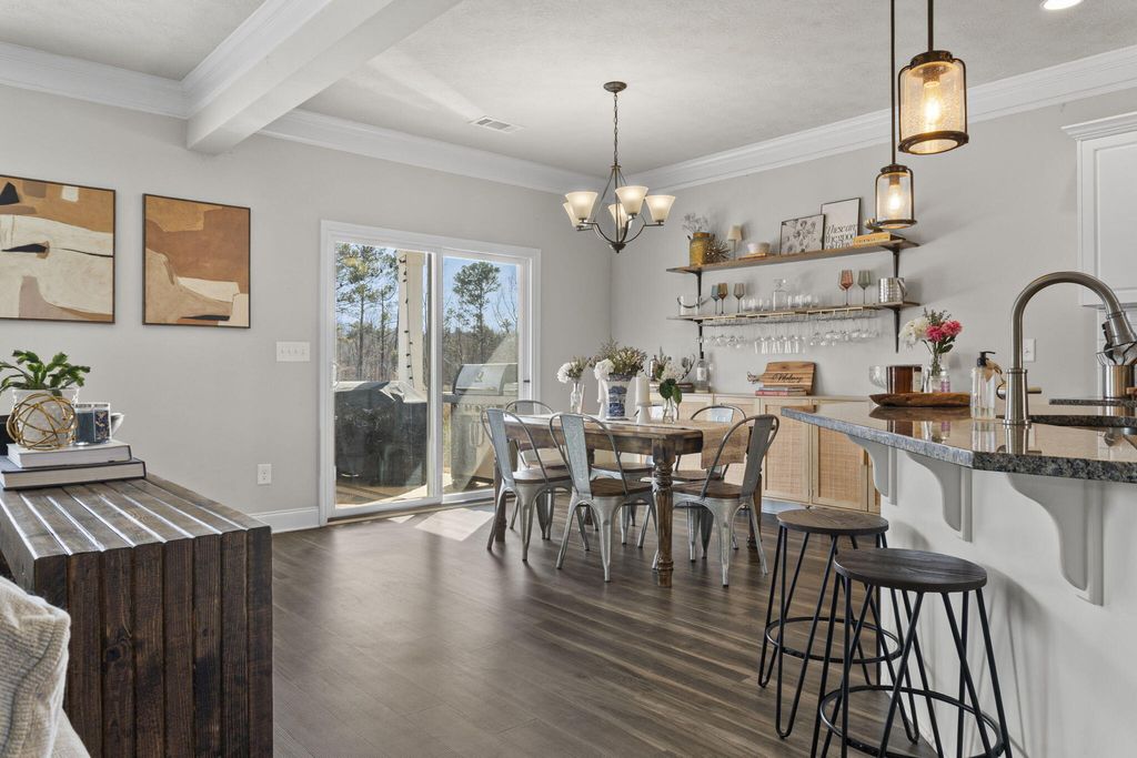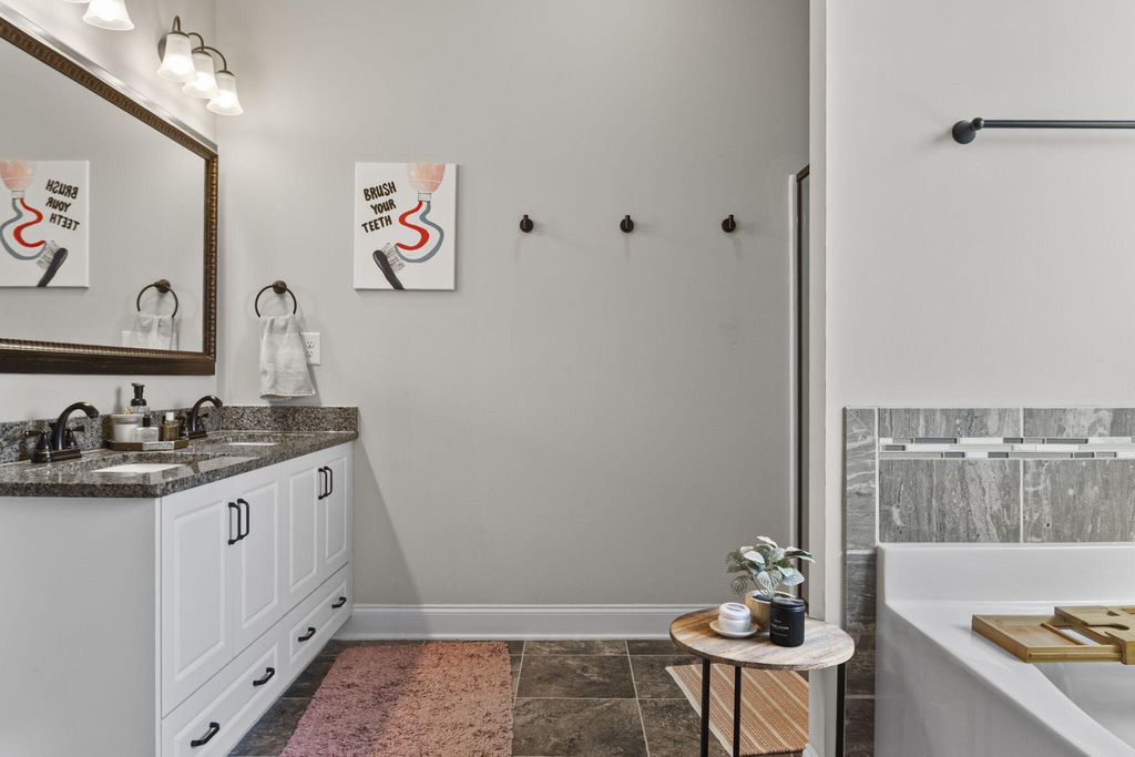 Experience the best of Gregory Landing--North Augusta's premier neighborhood offering space, style, and convenience. Tucked away in a quiet setting yet just minutes from everything, this beautifully designed Keystone Williamsburg floor plan delivers comfort, functionality, and opportunity. This 5-bedroom, 3-bath home is thoughtfully laid out for both everyday living and entertaining. The spacious owner's suite is a true retreat, easily accommodating large furniture while maintaining an open, elegant feel. Enjoy his-and-hers closets and a spa-inspired owner's bath featuring double granite vanities, a garden tub, and a walk-in shower. At the heart of the home, the kitchen impresses with a generously sized walk-in pantry, breakfast bar seating, and seamless flow into the eat-in kitchen, expansive family room, and formal dining room--perfect for gatherings large or small. Upstairs laundry adds everyday convenience right where you need it. The family room is anchored by a custom-built fireplace mantle with an electric fireplace, creating a warm focal point that blends modern comfort with timeless design. Gregory Landing features sidewalks, lighted streets, green space, and convenient access to I-20, Medical District, Areas Major Employers and the Savannah River. An added bonus: this home offers strong annual Masters Tournament rental history.