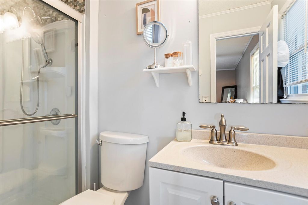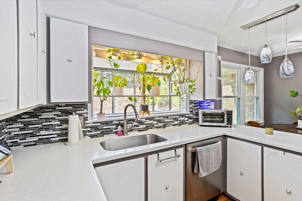 Welcome to 1836 Mountside Drive -- a spacious 4-bedroom, 3-bath brick home ideally located in the Highlands section of Martintowne, just steps from the North Augusta Greeneway. Designed for active, connected living, this home offers direct proximity to walking and biking trails while being minutes from downtown North Augusta, Augusta, and Ft. Eisenhower. Set on a generous double corner lot, the home features formal living and dining areas, a large family room with classic brick fireplace, and a bright kitchen with garden window and granite tile countertops. The main-level owner's suite provides convenience, while an additional bedroom with full bath offers flexible space for guests or multi-generational living. A heated sunroom overlooks the fenced backyard and courtyard patio -- ideal for relaxing after a ride or weekend entertaining. A major value-enhancing feature of this property is the installed solar panel system, offering long-term energy efficiency and potential significant utility savings (buyer to verify system details and transfer terms). In addition, the home features a functional and charming laundry chute from the main level to the lower-level laundry room -- a rare and practical design element. This property presents a rare opportunity to personalize finishes while benefiting from solid construction, energy-conscious improvements, and one of North Augusta's most desirable, established neighborhoods.