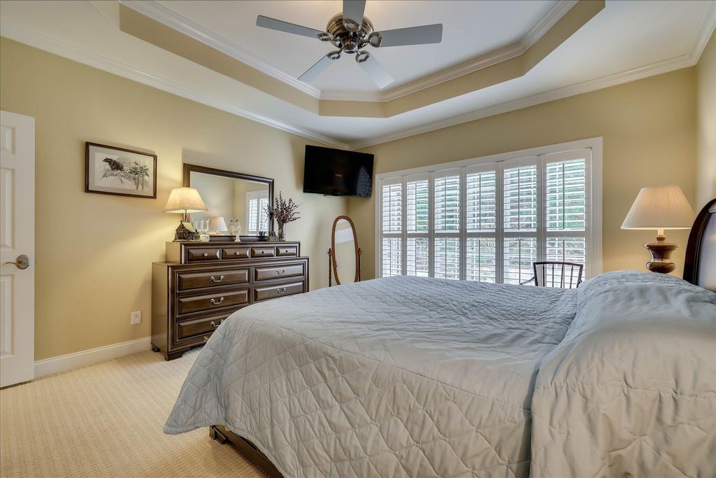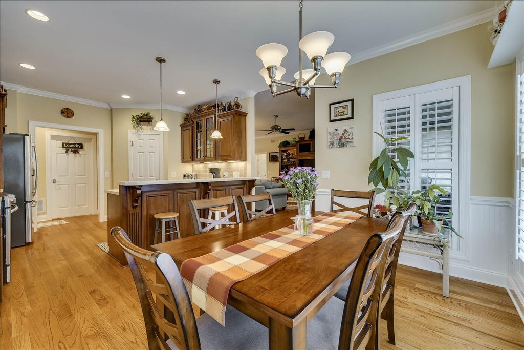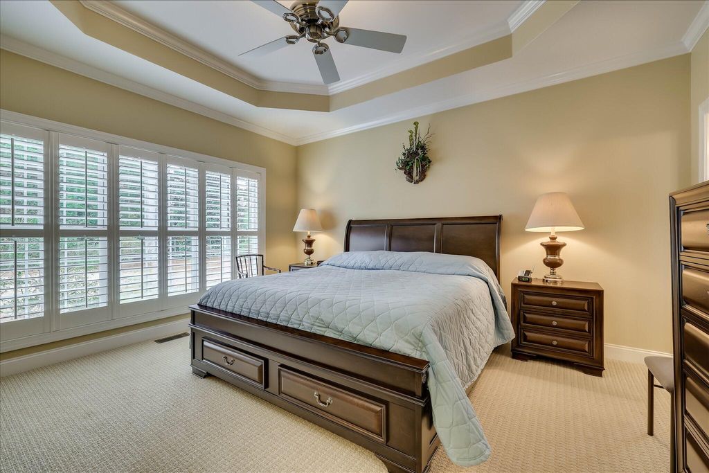 Custom-built brick home in the rolling hills of Cedar Creek, Aiken's premier planned golf community. This residence offers easy living with a popular split floor plan featuring 3BR/2BA on the main level. The foyer opens to a formal dining room and a spacious Great Room with a custom wall of built-ins. Interior highlights include hardwood floors in all main living areas and plantation shutters throughout. The kitchen is equipped with custom cabinets (pull-outs), an eat-up bar, a sunny breakfast room, and new stainless appliances, including a Bosch dishwasher. The owner's suite features a tray ceiling, walk-in closet, and ensuite with double sinks and a substantial shower. Upstairs, a versatile bonus room with an attached full bath serves as a 4th bedroom or office. Enjoy year-round comfort in the climate-controlled screened porch with EZ Breeze windows, or host at the outdoor kitchen with a built-in grill. Situated on a private, level .53-acre lot with a new drainfield (2025) and HVAC replaced in 2024. The garage features a security system, workbench, and storage cabinets that convey. Community amenities include Arthur Hills golf, pool, tennis/pickleball, and miles of nature trails.