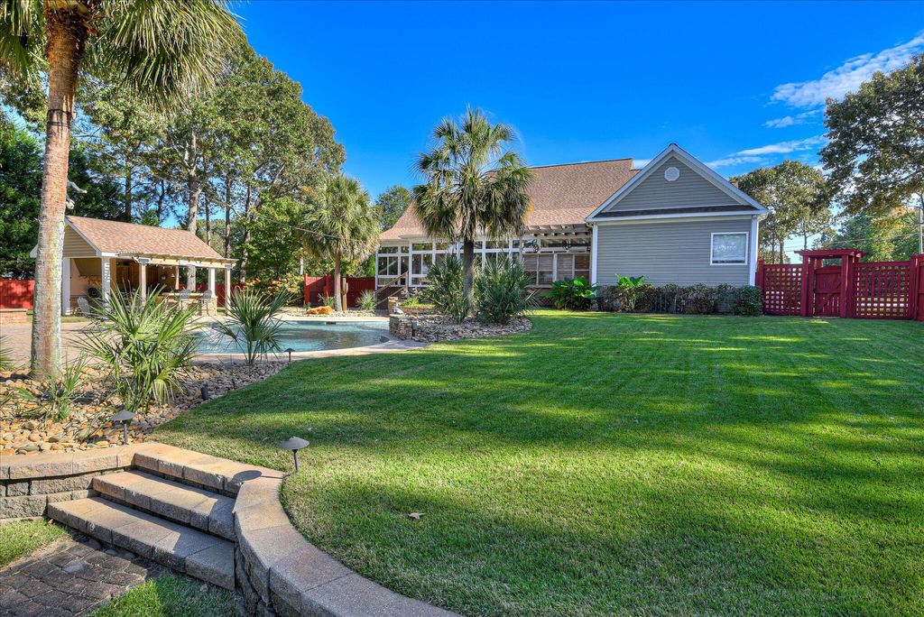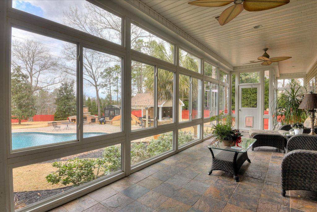 Discover this incredible custom property ideally situated in South Aiken, offering over 4,600 square feet of luxurious living space. Designed for comfort and elegance, this home features expansive windows throughout the living spaces and kitchen, providing breathtaking views of the resort-caliber backyard. Enjoy tall ceilings throughout the home, adding an airy and spacious feel. The primary suite is a true retreat, boasting a double tray ceiling, a spa-like en-suite bathroom, two walk-in closets, and direct access to a private built-in hot tub. Guest bedrooms are generously sized, each with their own bathrooms and walk-in closets, ensuring privacy and convenience for family and visitors. The upstairs loft and bedroom include a convenient half bath, with plumbing ready for a tub or shower if desired. The massive laundry room offers ample cabinetry for storage, and there's a half bath for guests. The custom kitchen features cabinet-faced appliances and beautiful granite countertops, perfect for culinary enthusiasts. The basement apartment offers both interior and exterior entry, an open living space, kitchenette with high-end cabinets and granite counters, large bedroom, and full bathroom. The spiral staircase provides interior access, and there's exterior access as well; ideal for a mother-in-law suite. For aging parents there is space ready for an elevator to replace the spiral stairs. Enjoy the full-length back sun porch, which is fully windowed and features its own dedicated heating and air zoning, allowing you to relax and entertain in comfort all year round. Step outside to the resort-like backyard, complete with a recently renovated Gunite pool, outdoor kitchen cabana with half-bath, brick paver gathering area around a massive outdoor fireplace, greenhouse, and lush landscaping. There's plenty of grass for kids or pets to play, making this the ultimate outdoor oasis. On the back of the property, you'll find an almost 2,500 sq.ft. shop with a ''man-cave'' that includes a kitchenette, front porch, half-bath, large garage area, and an additional overhang that nearly doubles the covered storage area; it's perfect for equipment, toys, and vehicles. This home also offers a whole house natural gas generator, oversized two car attached garage encapsulated crawl space, foam insulation, tankless water heater, water filtration system. Don't miss your chance to own this exceptional South Aiken property; schedule your private tour today!