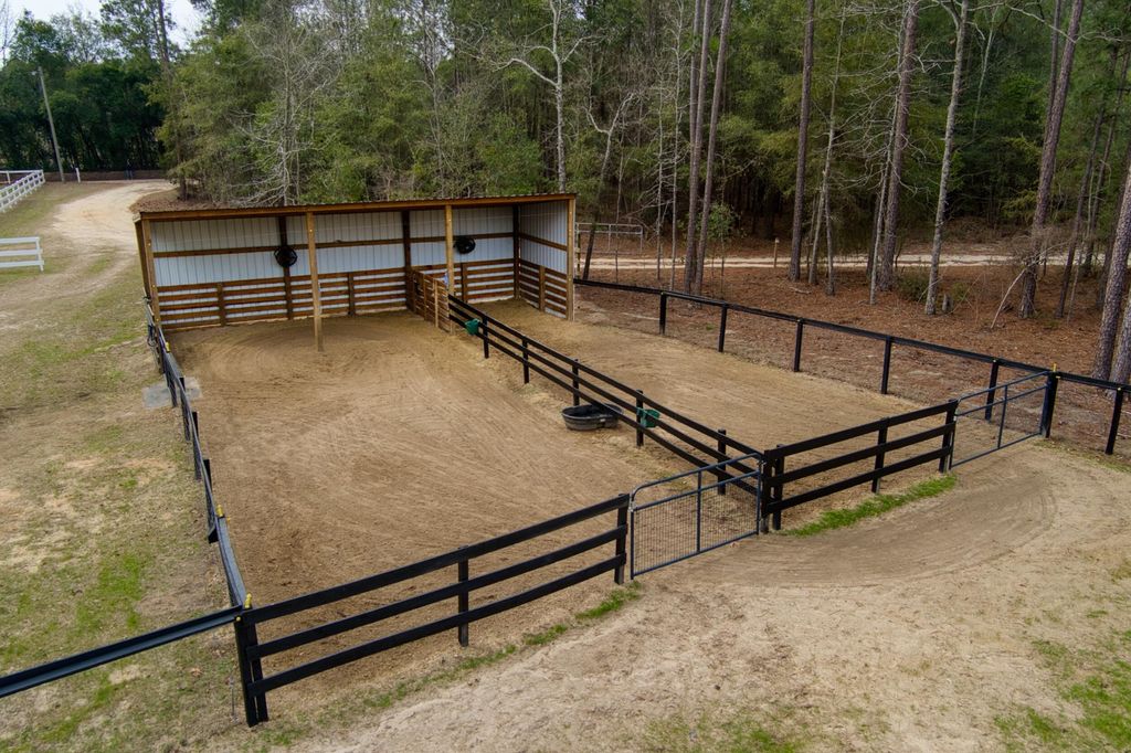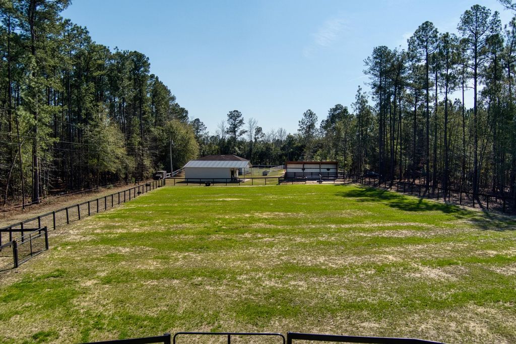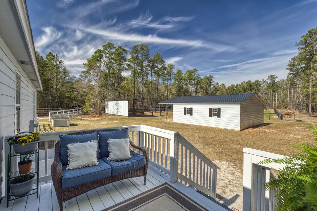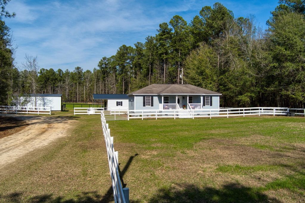 Enjoy peaceful country living on two beautifully improved acres just 15 minutes from Downtown Aiken and only a few minutes from Old Barnwell Golf Club. This charming 3-bedroom, 2-bath home offers comfortable living alongside exceptional equestrian amenities. Inside, hardwood floors lead to a bright, open living and dining area, while the kitchen features stainless steel appliances, additional cabinetry, and a window overlooking the property. The spacious primary suite includes a private bath and custom closet organizer, with two additional bedrooms offering abundant natural light. Designed with horse enthusiasts in mind, the property features front and back pasture fencing, solar electric fencing, multiple access gates, a 60-foot round pen, a 40x30 aluminum barn with a concrete pad, and a separate 36x12 run-in shed. The land has been professionally cleared, graded, and seeded to create a beautiful, usable pasture. Recent updates include a new well (2025), new kitchen appliances, fresh interior and exterior paint, new carpet in all bedrooms, updated lighting and hardware, new blinds, additional cabinetry, and updated doors throughout. Enjoy the quiet setting from the back deck overlooking the property while benefiting from thoughtful improvements already in place. A wonderful opportunity for those seeking a small equestrian property close to Aiken's shopping, dining, and world-class golf.