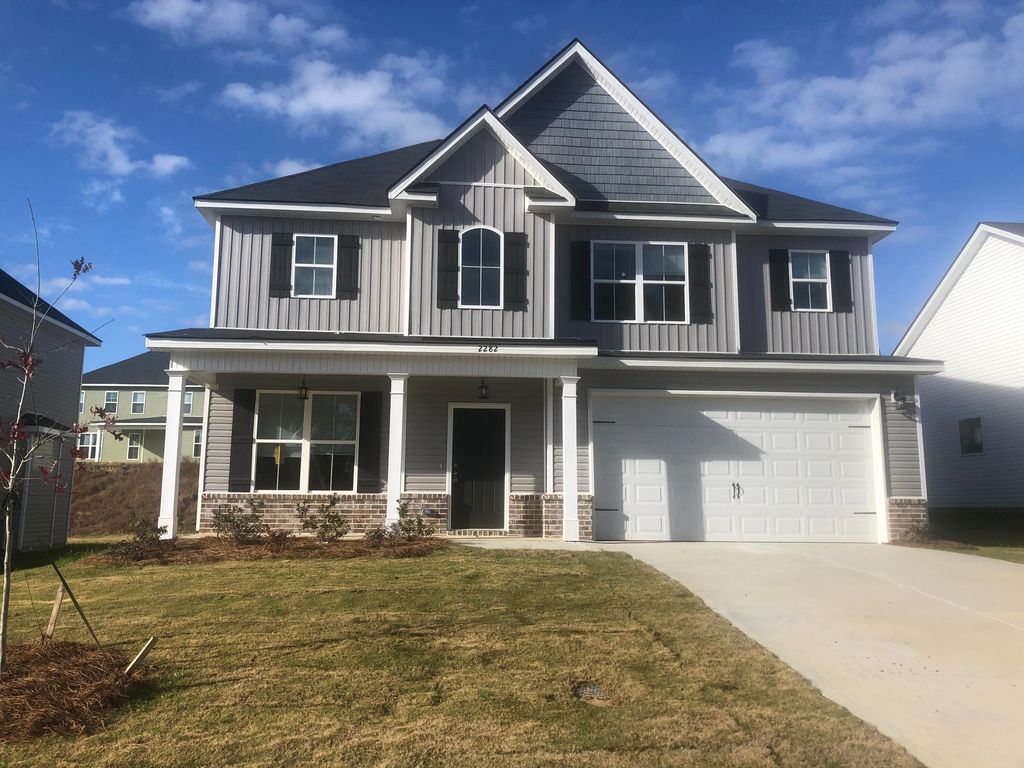 The 2618 Plan by Faircloth Homes. This charming 2 Story 4 bed 2.5 bath 2 car garage offers a spacious entrance. Enjoy cooking in the Kitchen offering granite countertops, tile backsplash, and a kitchen center island. Upstairs you will find the Owners suite and 3 additional bedrooms. The oversized owner suite has plenty of room for large furniture, Owner Bath offers dual vanity sinks, a garden tub, and a separate walk-in shower with a large walk-in closet. Covered front and back porch perfect for tranquility and a peaceful evening after a long day of work. The builder offers 1 year home warranty and a 2-10 Limited Libilty Quality builder Warranty, 1 Year Termite Baiting System, Fully landscaped yard. Community features sidewalks, street lights, and COMING SOON POOL. Less than 10 mins to Fort Gordon. The photo is a stock photo may not represet actual home