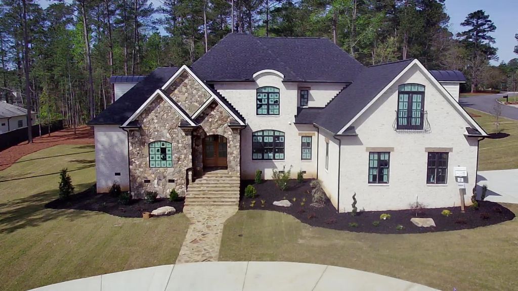 New Construction home with over 5475 heated sq ft. Main floor has large master with porch access and large bathroom and closet. WIC has built in cabinets and is divided for his/her sections. The master bathroom has a very large shower with seat and solid glass surrounds. The stand alone soaking tub has floor mounted faucet with spray for ease of cleaning or washing. Very open floor plan with vaulted ceiling, coffered ceiling and more. Home has 2 separate stairscases. A circular staircase as you enter from foyer and back stair case from garage, both with plenty of trim adding to the beauty of the areas. Office has vaulted ceiling and a full bath, for possible Masters Rental conversion. There is a large extra main floor bedroom for visiting family that traveling up the stairs could be challenging. Large laundry with sink, ref and more space. Back hallway has a mud room with lockers and bench for seating. Large 3 car garage with electric charger outlet. Separate circular drive for front entrance with real stone inlays leading up to the all stone entrance, perfect for guests to be welcomed from. Large rear covered porch with slate floor, stained beadboard wood ceiling and cedar columns. This home is all brick and real stone with some hardie above roof lines. Weathershield high end alum clad bronze windows, these are the best windows. Upstairs is a large bonus/bed with full bath and WIC. 3 more full beds/baths await and a upstairs kids TV room was included. Hardwood recently added to the upstairs so there is no carpet to be cleaned in your new home. Designed for a nice Masters Rental with each bedroom having a private bath. House can be available within 30 days for move in. Already had requests for masters rental of $40+K, this house almost will pay for itself.