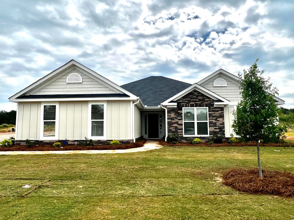 The Jefferson 5, presented by Bill Beazley Homes, is a fantastic open floor plan designed with you in mind! This lovely ranch-style home boasts four bedrooms and 2.5 bathrooms all on a smart-sized lot. The charming kitchen features granite countertops, a tile backsplash, recessed lighting, a power pantry, a center island with a sink and dishwasher, stainless steel appliances, and a garbage disposal. The primary bedroom retreat includes a spacious walk-in closet, while the bathroom has double vanities, a garden tub, and a walk-in shower. All bathrooms offer quartz countertops, LVT flooring, and framed mirrors. Evacore waterproof click flooring can be found in the foyer, kitchen, breakfast area, great room, power pantry, half bath, and garage hallway. The electric fireplace in the great room is perfect for cozying up on chilly evenings. Other features of this home include plenty of storage, 2-inch faux wood blinds on the front windows, a covered back porch and open patio, a programmable sprinkler system, a tankless gas water heater, a security system, and more! This home is currently under construction. 625-SV-7009-00