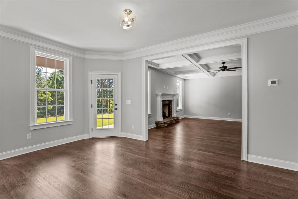This is the Beautiful 2 story Austin plan courtyard entry garage home on flat lot. Gorgeous, large 2 story foyer with open staircase. Lots of room to entertain guest in this open concept plan that includes the Family room, keeping room and Gourmet kitchen features granite counter tops, gas range, quality custom cabinetry, kitchen island, eat-in breakfast room . Separate dining room and bedroom/bathroom downstairs. Hardwood floors throughout downstairs, carpet and ceramic tile upstairs, hardwood staircase. Large owner's suite with 2 walk in closets, double vanities, garden tub and tiled shower upstairs along with 2 bedrooms and a big flex room. Laundry upstairs. Large covered back porch. Tankless water heater. Conveniently located to shopping, I-20, Fort Gordon and 20 minutes from downtown Augusta. This plan is perfect for a growing family! Amazing Amenities designed for an active lifestyle in Highland Lakes!