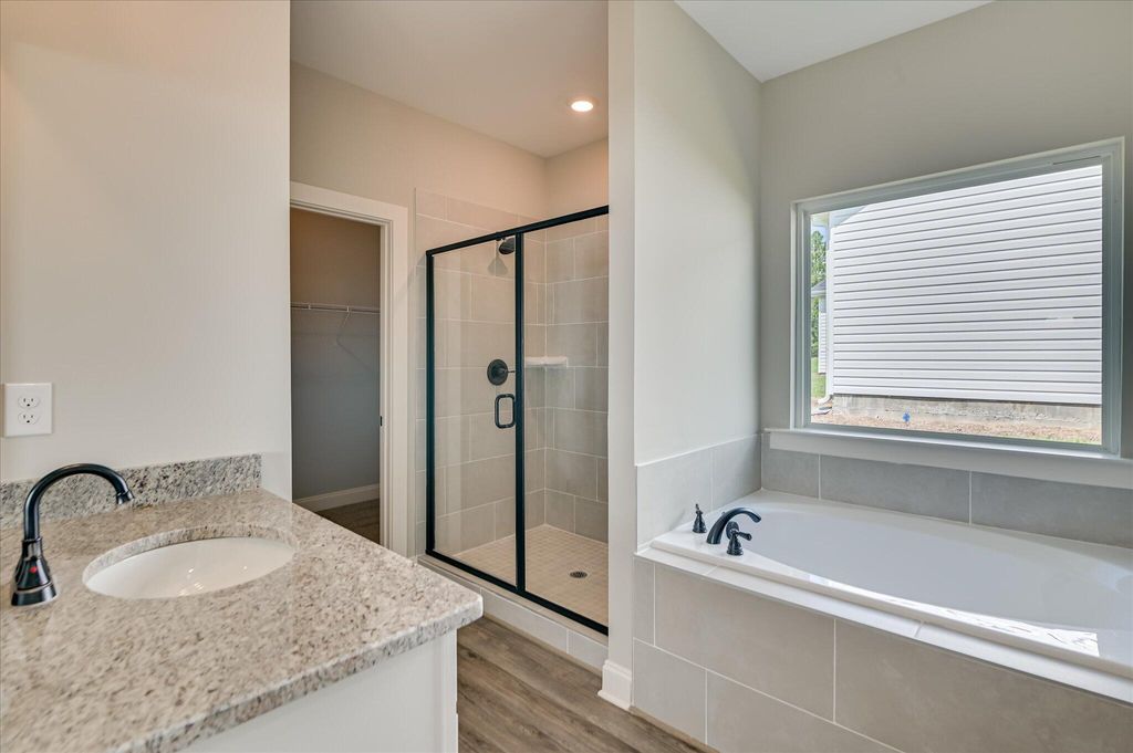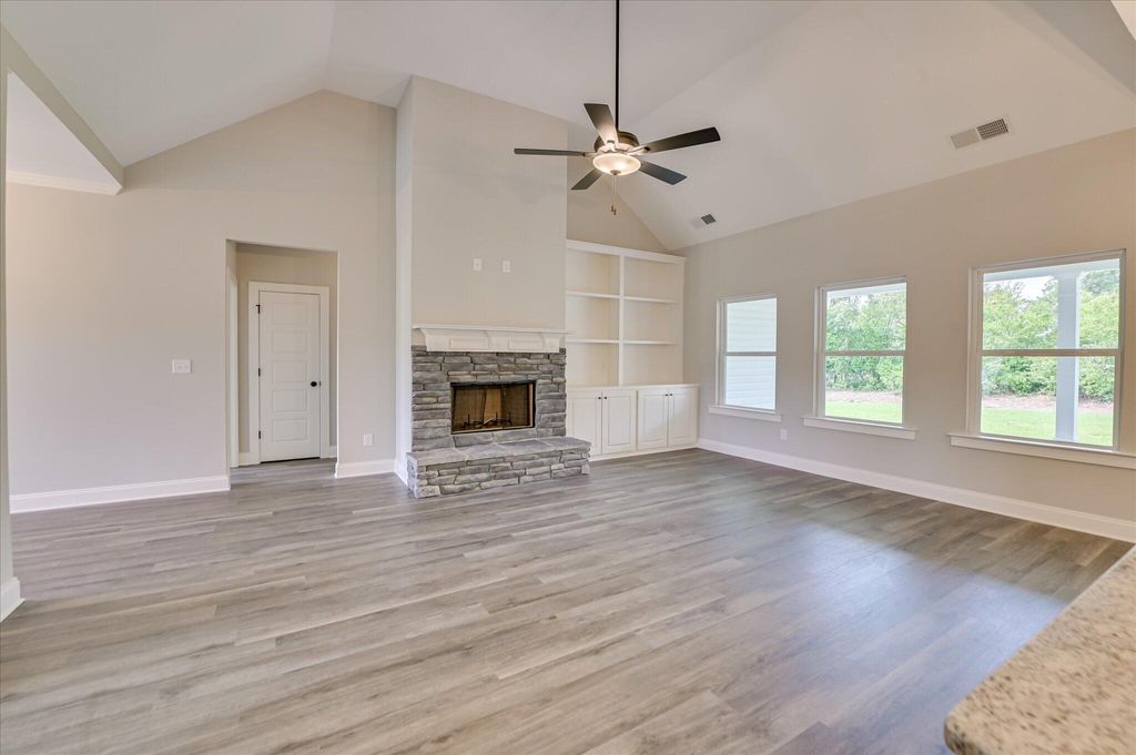 Location! Location! Farmstyle Ranch! Welcome to Roselawn, a beautifully designed single-story ranch with an inviting great room and an open, eat-in kitchen with a dining area. Enjoy ample storage in the oversized pantry and a layout perfect for both entertaining and everyday living. This thoughtful split floor plan places the primary suite on one side of the home, complete with dual vanities, two walk-in closets, a soaking tub, a 5' shower, and a private water closet. Two spacious bedrooms with large closets occupy the opposite wing, ensuring privacy for all. The home also features a dedicated office or flex room, ideal for work or play. Relax outdoors on the spacious covered front and back porches. Inside, the great room boasts a vaulted ceiling, a cozy wood-burning fireplace with a stone hearth, and stylish floating shelves. The kitchen is well-appointed with stainless steel appliances, a breakfast bar, and modern finishes. A 2-car garage with an automatic opener and a 1-2-10 year warranty complete the package. Located in a small, peaceful neighborhood with large lots and a quiet cul-de-sac, this home offers minimal traffic and convenient access to schools, shopping, and dining in North Augusta. Plus, it's a quick drive to both downtown North Augusta and Augusta. Experience comfort, convenience, and style at Roselawn!