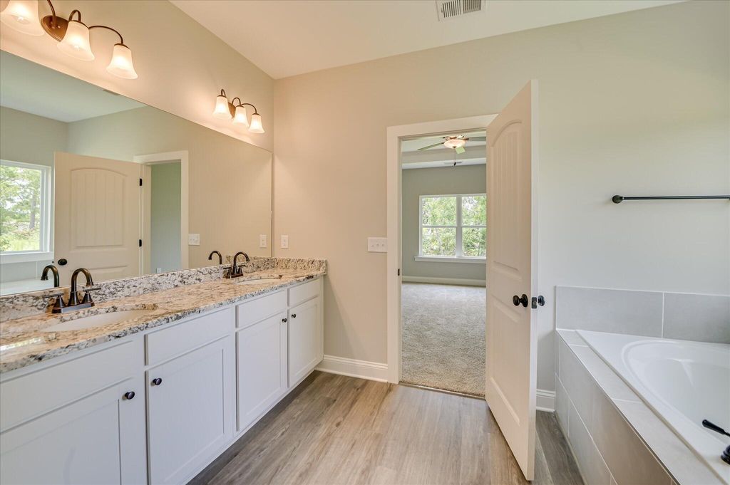 Location! Location! Farmstyle Ranch! Discover the charm of the Hawthorne, a thoughtfully designed single-story ranch featuring a spacious great room and an open, eat-in kitchen with a dining area, corner pantry, and plenty of counter space. The primary suite includes dual vanities, a soaking tub, a 5' shower, and a private water closet, offering a perfect retreat. With two additional generously sized bedrooms, this home is ideal for both families and empty nesters alike. Enjoy outdoor living on the roomy covered front and back porches, and cozy up indoors by the wood-burning fireplace with a stone hearth and floating shelves, all under a vaulted ceiling in the great room. Stainless steel kitchen appliances, a breakfast bar, and a 2-car garage with an automatic opener complete the home's modern conveniences. Located in a small, quiet neighborhood with large lots and a cul-de-sac for minimal traffic, this home offers both tranquility and convenience, with easy access to schools, shopping, and dining in North Augusta. Plus, it's just a short drive to downtown North Augusta and Augusta. The Hawthorne is backed by a 1-2-10 year warranty for your peace of mind. Experience comfortable, stylish living in the Hawthorne!