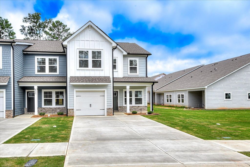 MODEL HOME OPEN DAILY from 1-5:00. 7500.00 builder incentive towards closing costs. Neighborhood amenities planned for this community include a pool and dog park. Introducing PlanDwell's luxurious Durham plan. This is an end unit with 3 bedrooms, 2.5 baths and a single car garage. Boasting fully landscaped yard and inviting covered front and back porches. As you step inside, you're greeted by elegant heavy molding and exquisite trim detailing on all windows, along with crown molding adorning the kitchen, great room, and flex/dining room. Take in the sophistication of designer waterproof flooring that seamlessly flows through the main living areas. The gourmet kitchen shows its elegance through the open layout, quartz countertops, oversized island, designer backsplash, and stainless steel appliances. Natural light floods the spacious great room, while a powder room featuring a decorative framed mirror and pedestal sink awaits just off the kitchen. A luxurious owner's suite on the first level is enhanced by a spa-like bath with double vanity, water closet, tiled shower with fiberglass pan, and an oversized walk in closet, and overlooks the privacy fenced rear yard. A laundry/mudroom area directly off the garage finishes out the main level all with 9 foot ceilings. Make your way up the hardwood treads to discover the two secondary bedrooms, both with walk-in closets and a guest bath with double vanity and tub/shower combination. Ceramic tile in both bathrooms. All bedrooms offer plush designer carpeting with an upgraded pad thickness. Additional amenities include a pre-wired home package with Cat5 internet and cable wiring. Conveniently situated near major highways, shopping, dining, Downtown Aiken and Southside district, and Citizen's Park for those wanting to utilize the outdoor walking paths and playground. This home offers both luxury and convenience in one remarkable package. PHOTOS OF ARE LIKE HOME AND NOT THE HOME LISTED. PLEASE CONTACT SITE REALTOR FOR COMPLETION STAGE OF THE HOME.