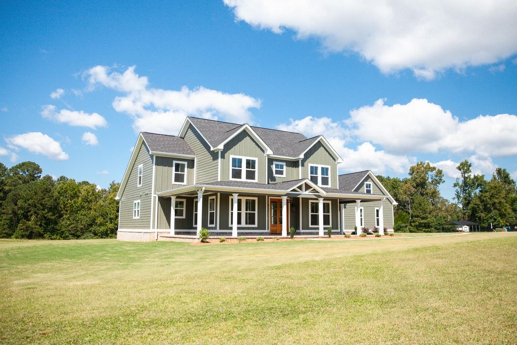 Welcome to your dream home nestled on 5 acres of serene landscape in Appling, GA. This gorgeous new construction by Greenhead Homes offers the perfect blend of luxury, comfort, and modern living. This spacious home boasts 4 bedrooms and 3 ½ baths, providing ample space for family and guests. Enjoy the flexibility of a recreation room and a study, perfect for a home office or additional living space. The expansive owner's suite features a luxurious tile shower, a freestanding tub, and quartz counters, creating a spa-like retreat. The kitchen is a chef's delight with a farm sink, a 36'' gas Forno range, GE SS appliances and cabinets with soft-close features as well as quartz counters adding elegance and functionality. Spacious Guest rooms are conveniently located upstairs as well as a spacious rec room. A large 3-car side entry attached garage is great for parking and storing multiple vehicles/recreation items. You also and a detached 28 x 30 2-car garage area that could also be made into the perfect man cave or other versatile options. Situated just minutes from Lake Thurmond/Clarks Hill and Mistletoe State Park, this property offers easy access to outdoor recreation and natural beauty. Additionally, it is conveniently located approximately 15 minutes from I-20, providing a quick commute to nearby amenities and attractions. This exceptional home is a rare find, combining luxury with the tranquility of country living on an expansive lot with some pasture land offering the possibility of some farm animals. Don't miss the opportunity to make this stunning property your own. Contact us today to schedule a private showing and experience the beauty and craftsmanship of this Greenhead Home.
