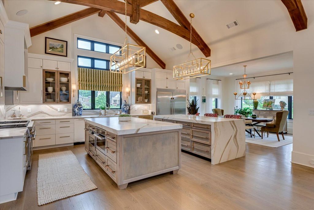 Experience unparalleled luxury in this custom-built residence within The Estates at Jones Creek. This home seamlessly blends modern design with timeless elegance, offering a lifestyle of sophistication and comfort. Key Features: Grand Entrance: A striking light brick facade and 10-foot dual glass front door lead to a private courtyard with a serene fountain nestled between dual garages. Elegant Interiors: The living area boasts a floor-to-ceiling marble accent wall, modern water mist fireplace, and rustic Colorado cedar beams. Mushroom-stained white oak floors enhance the inviting atmosphere. Gourmet Kitchen: Equipped with premium appliances, including a 48-inch Wolf dual-fuel range, Miele built-in steamer, coffee maker, and two Thermador dishwashers. Two oversized islands feature waterfall marble countertops and custom gold lighting fixtures. Luxurious Master Suite: Features floor-to-ceiling windows, a separate seating area, and a spa-like bathroom with a barrel ceiling, soaking tub, and expansive glass shower surrounded by marble. A spacious master closet includes a center island for stylish organization. Entertainment Spaces: An upper-level glass/screen porch with a cathedral wood ceiling offers panoramic golf course and lake views, a wood-burning fireplace, and an outdoor kitchen. The lower level includes a second kitchen, custom wine cellar, sewing/craft room, and workshop. Outdoor Oasis: Floor-to-ceiling glass windows open to an expansive area featuring an inground pool, spa, waterfalls, and a fire feature. A separate wood-burning fireplace and seating area provide the perfect setting for cool evenings. Additional Amenities: A four-car garage, walk-up attic with ample storage, custom sound system, external security cameras, two tankless gas water heaters, and custom draperies and blinds throughout. This residence has also served as a corporate host home during Masters week, offering potential for additional income. Situated on a coveted golf course lot overlooking a serene pond, it combines luxury, comfort, and unparalleled amenities. Don't miss the opportunity to make this exceptional residence your new home.