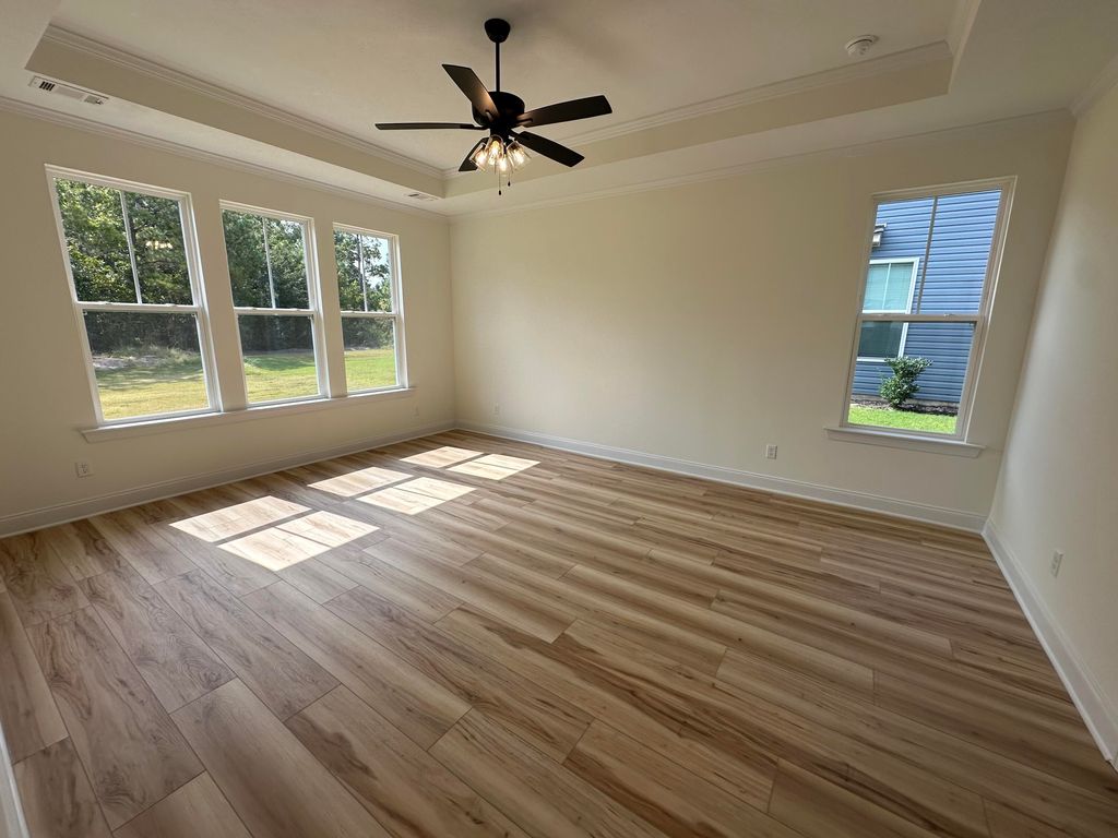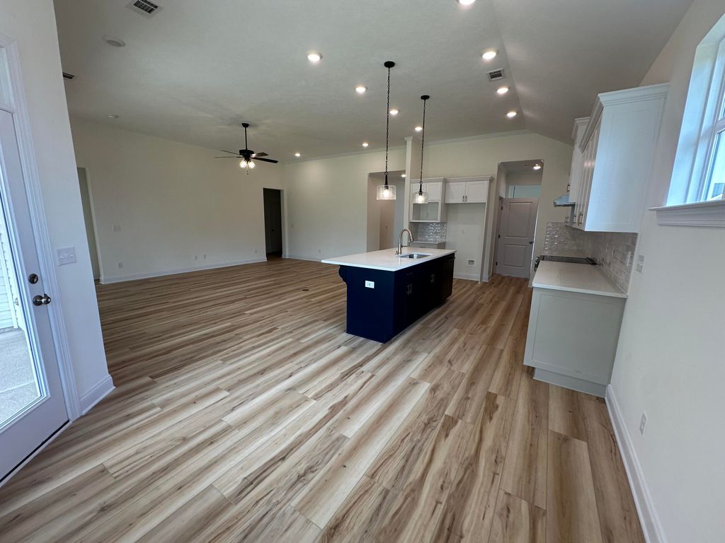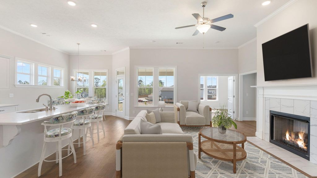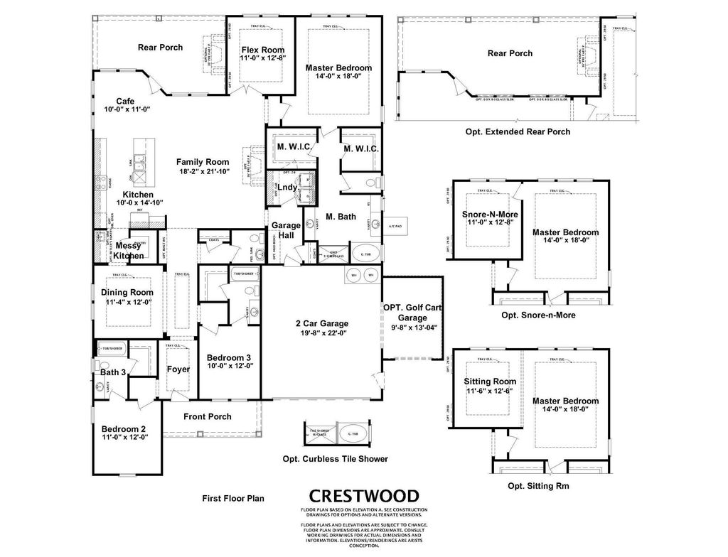 The Crestwood Plan by Ivey Homes offers an open floor plan design of single level living! Extra spaces like optional messy kitchen, flex room and large laundry room give this plan all the extra spaces you need! The Owner's Suite has a sitting room or snore-n-more option, too. Front and rear covered porches give you space to relax outside