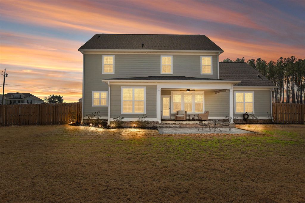 MADE IN AMERICA! You'll feel the warmth of this gracious home when you walk through the front door. Soaring ceiling, wide plank flooring and all the most up-to-date amenities are already in place. Built in bookcases surround the mantled fireplace in the great room. Open to a chef's delight kitchen, there's a generous sized island w/seating or room for staging a party. The multi-functional gas cooktop could inspire anyone to become a great cook. Enjoy the view from a window over the farmhouse sink or step out to the covered porch and enjoy nature and serenity! The breakfast area is nestled in a windowed alcove. There's also a laundry room and powder room on either side of the mud room coming in from a two car garage. Back at the main entrance is a judges paneled dining room or it could be a lovely sitting room with a desk. Great potential for that space! The first floor primary bedroom is a sanctuary unto itself, with a coffered ceiling and abundant windows. You'll love the sumptuous spa-like bath with an incredible shower, sublime soaking tub and an enviable closet for blue jeans and boots or the finest wardrobe in the land. Ascend the beautiful staircase to four more spacious bedrooms. Two bedrooms have an adjoining double sink bath & private shower. The other well appointed upper bathroom has access from the hall or from a pocket door inside the media sized fifth bedroom. All windows throughout the residence have custom blinds. The entire yard has a sprinkler system and the backyard has a privacy fence in place, in case you add a pool to enhance your dream. Completed in 2023, all this can be yours because the price is right, so why wait!?!