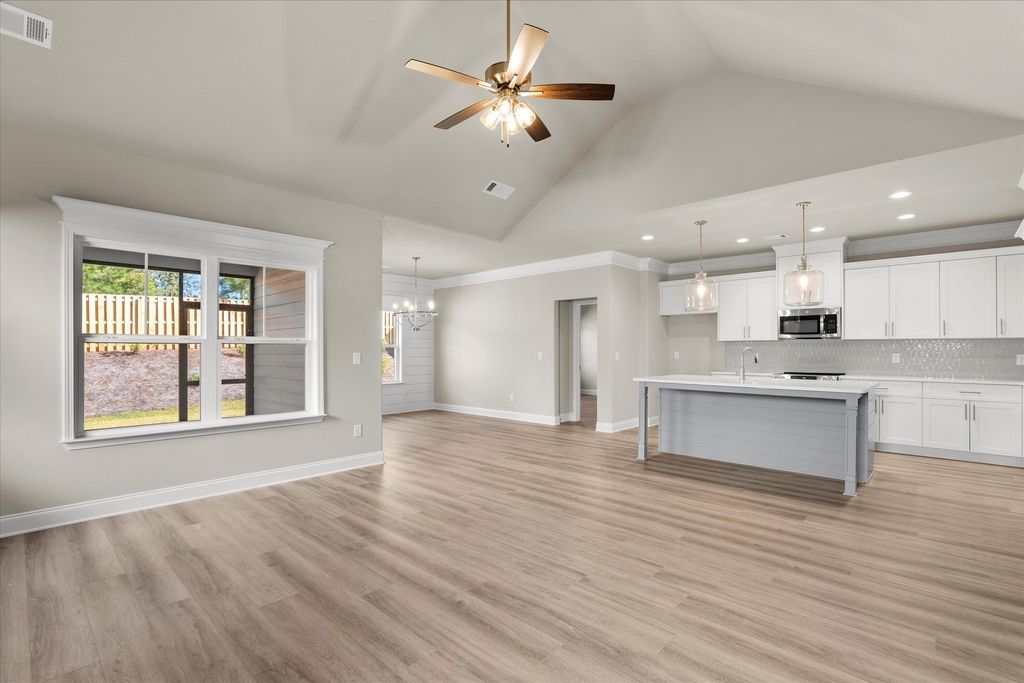 The Nottingham Plan by Oconee Capital . Welcome home to this lovely ranch plan. 1901 sq. ft. Beautiful open concept in the family room/kitchen. dining room - vaulted ceilings in great room with fireplace. Kitchen has granite countertops and tile backsplash, stainless steel appliances. Laundry room off of garage entrance foyer. Split floor plan, 2 bedrooms and full bath on right side of home off of entry foyer and spacious owner's suite on left side of home with vaulted ceiling. Owner's bath has separate tub and shower, double vanities and granite countertops. Covered back porch. Landscaped yard and sprinkler system front and back. Double garage, 30 year arch shingles. Call today for your showing. NOTE: Photos are of a like home and not the exact home listed. Front Elevation is different, but floorplan is the same. Room sizes are approximate, if important please verify. If schools are important, please verify with county.